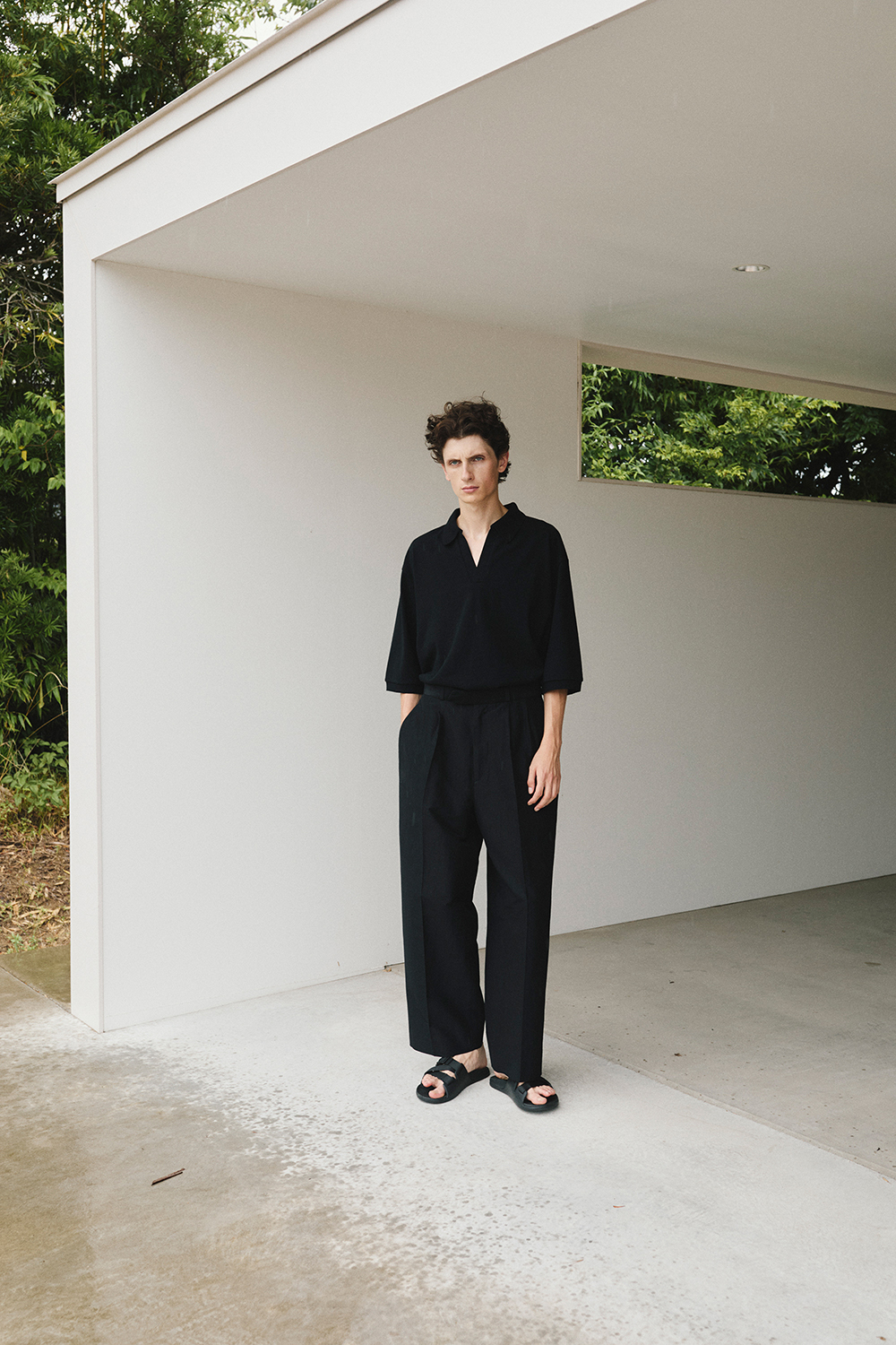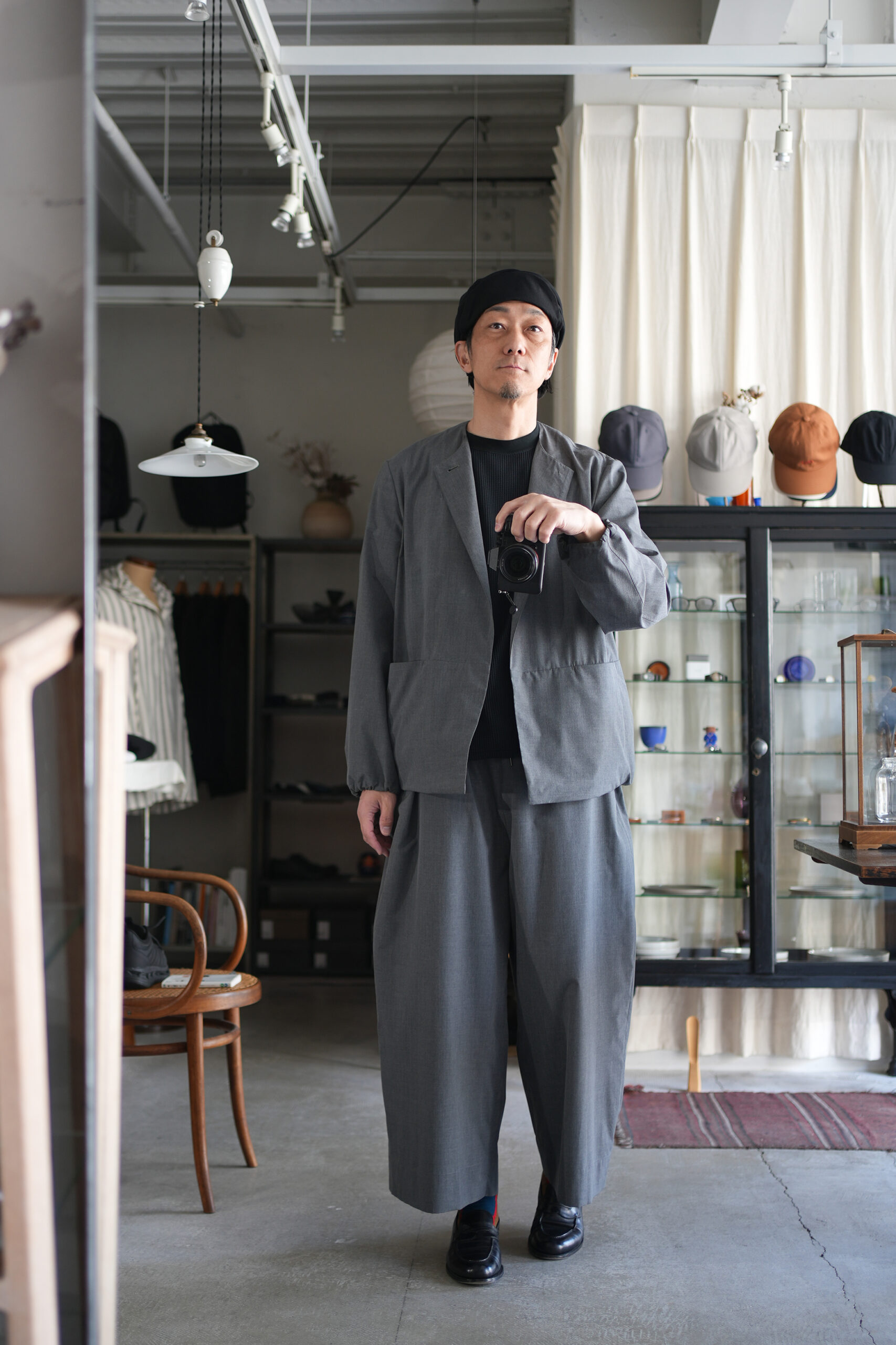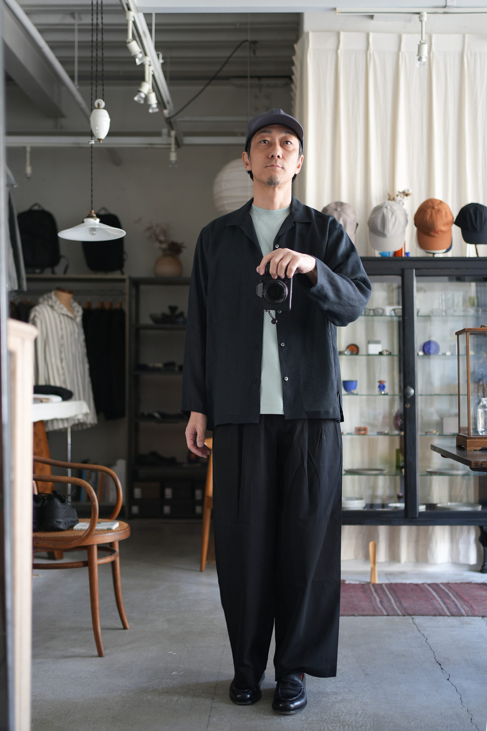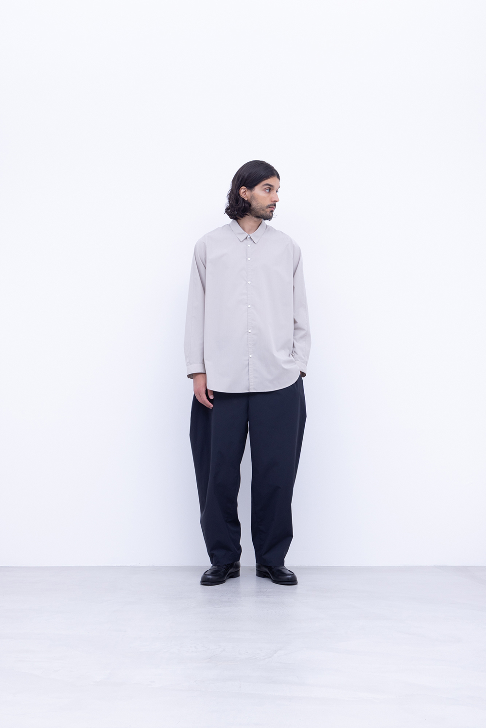 「MARKAWARE」HEMP SHIRTING COMFORT FIT OPEN COLLAR SHIRT & TRIPLE PLEATED EASY TROUSERS