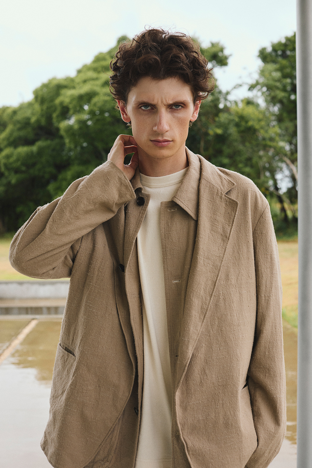 60/2オーガニック強燃ボイル3/2ツイル / ショートフィールドブルゾン