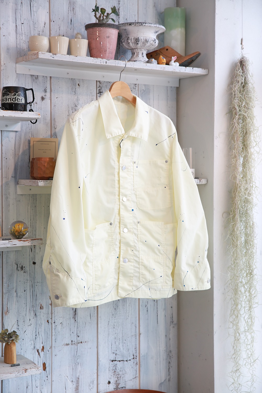 割織ポリエステル糸を使用したツイル生地に加工を施したジャケットです。