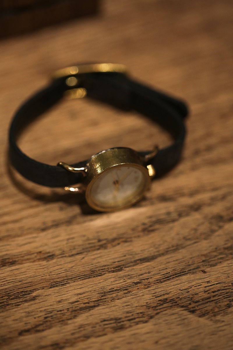 鍛金出身であり、自作の金槌を用いてケースやバックルそれぞれに凹凸の表情をいれてあります。