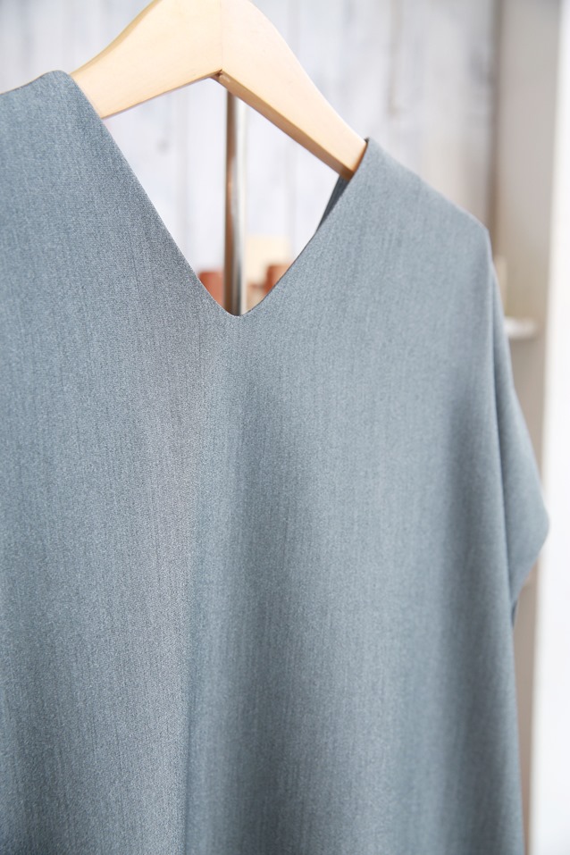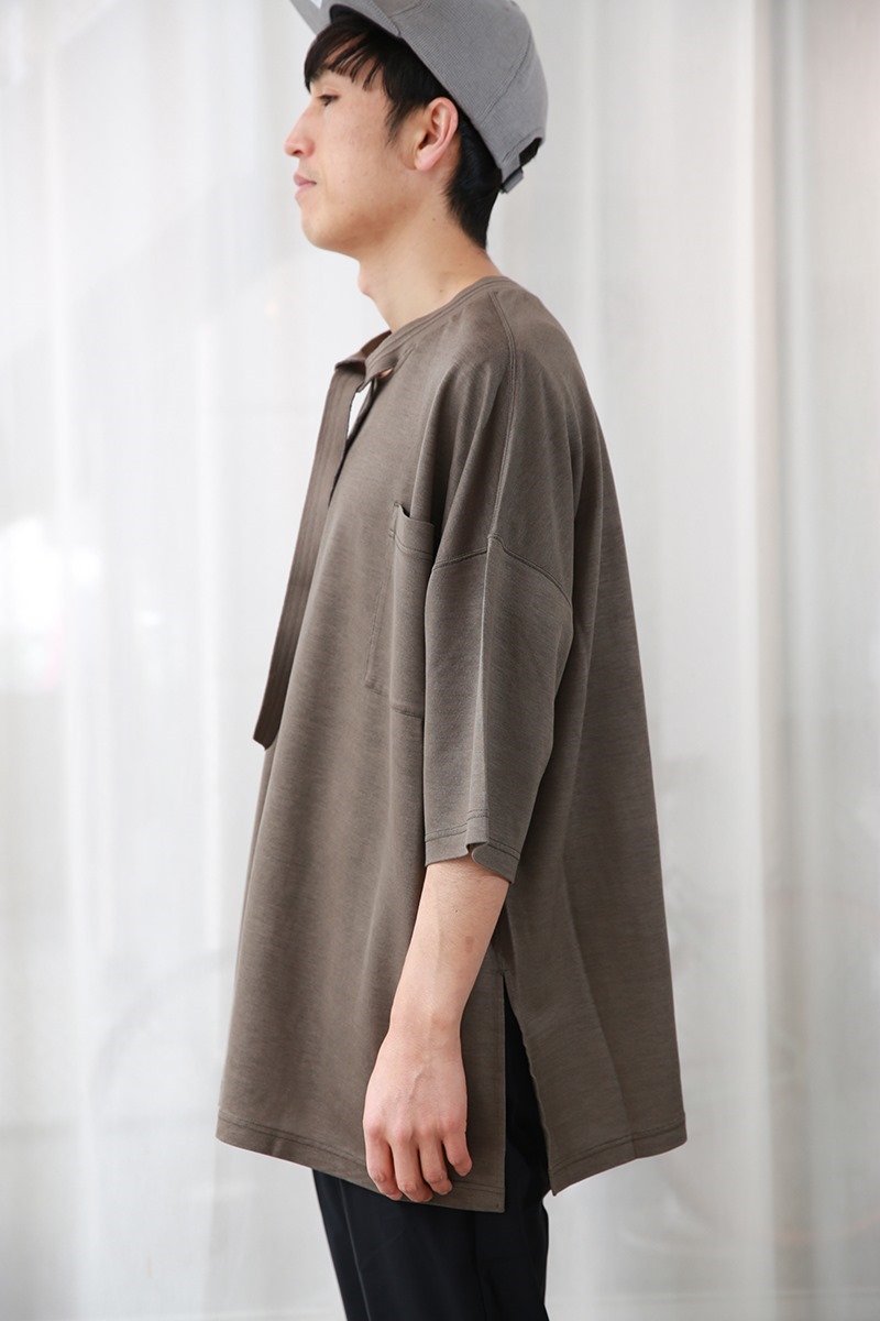 ワイドボリュームシルエットのキーネックデザインのワンピースです。