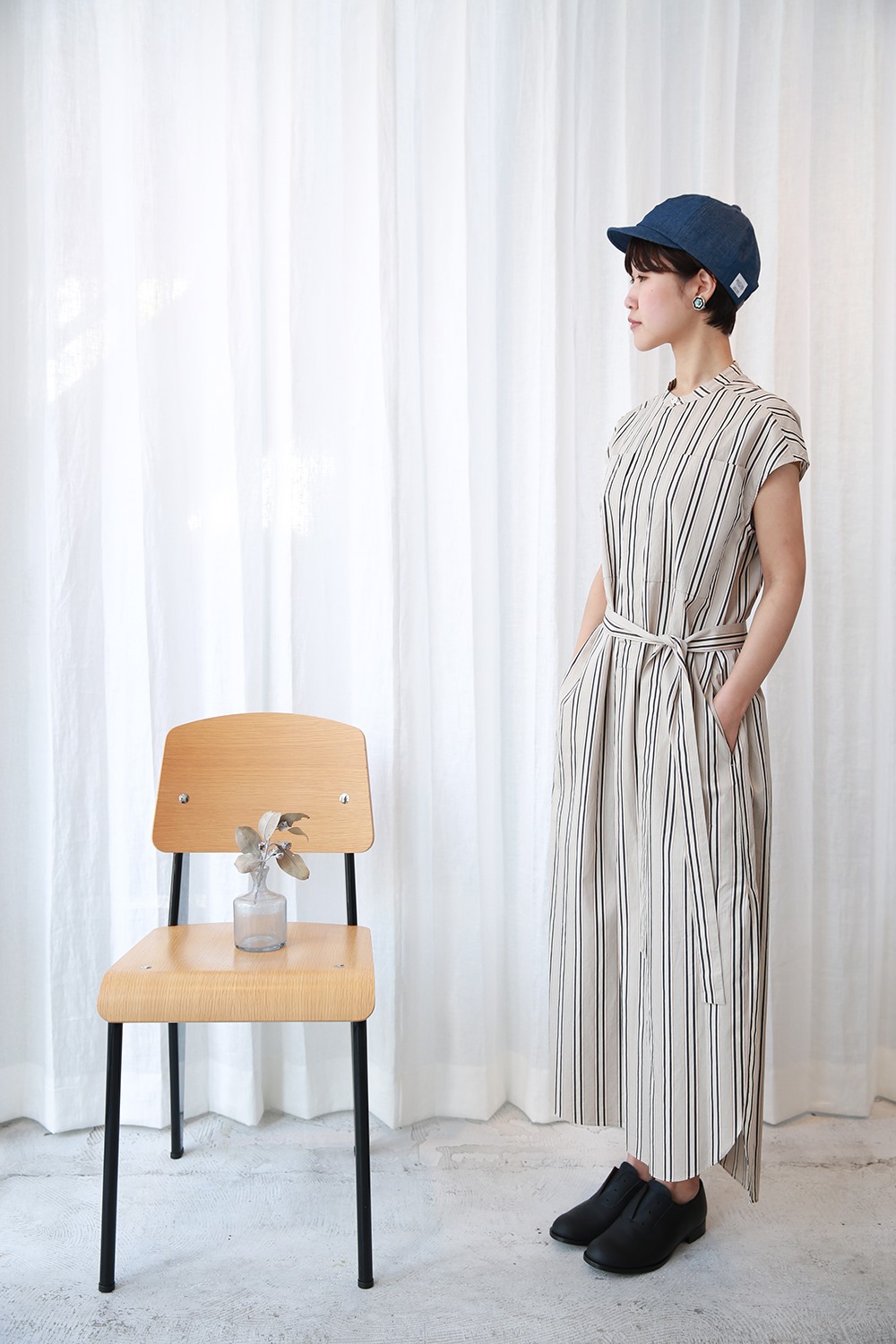 ワンピースは本日入荷した「unfil|アンフィル」washed egyptian cotton twill sleeveless shirt dress