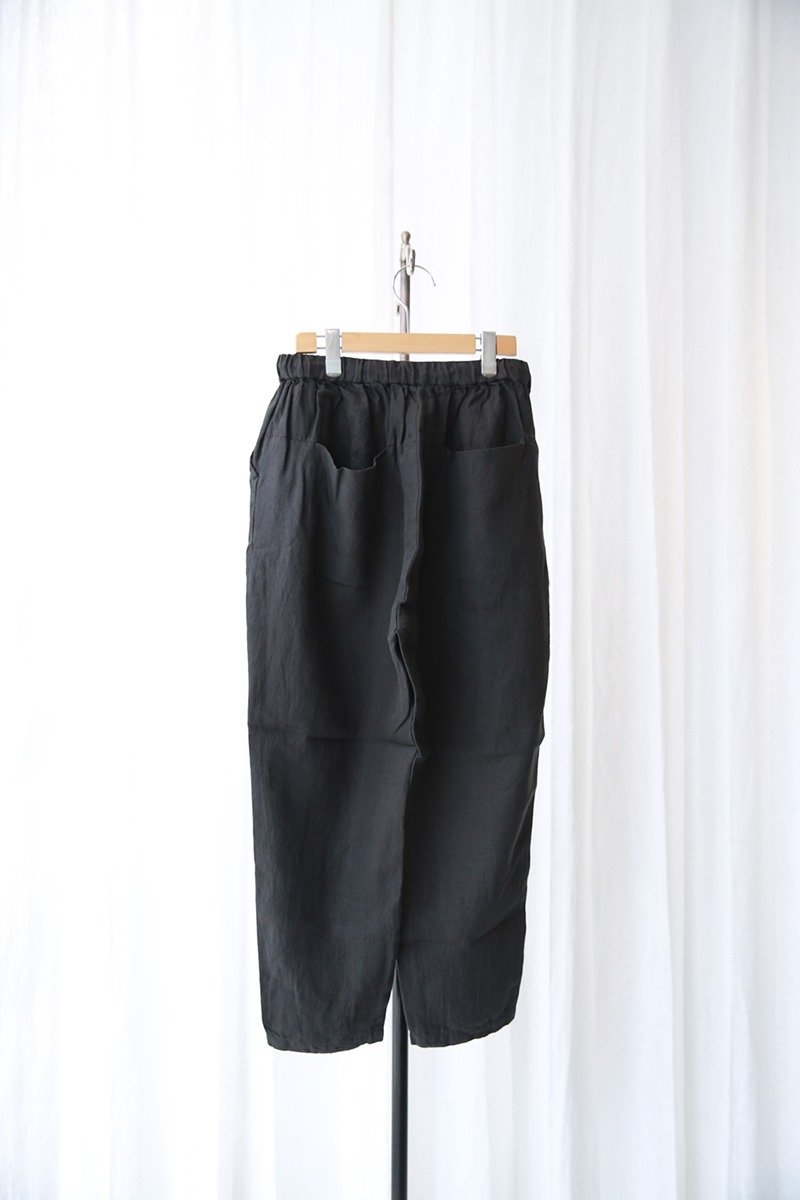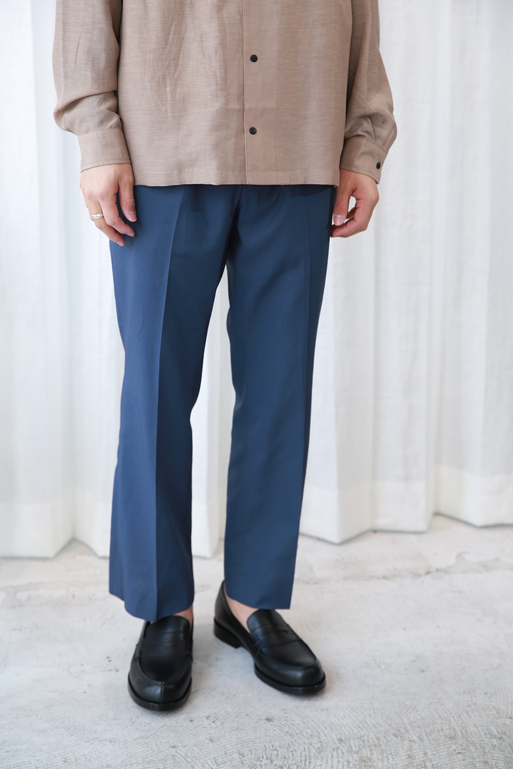 9.5分丈、たっぷりゆとりを持たせたワタリから裾に向かって緩やかにテーパードさせたシルエット。