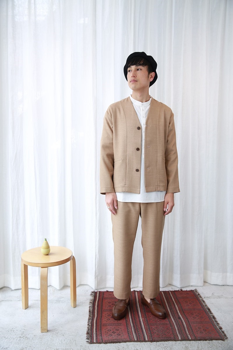 「EEL Products|イールプロダクツ」夕凪ジャケット&パンツ、セットアップスタイル。