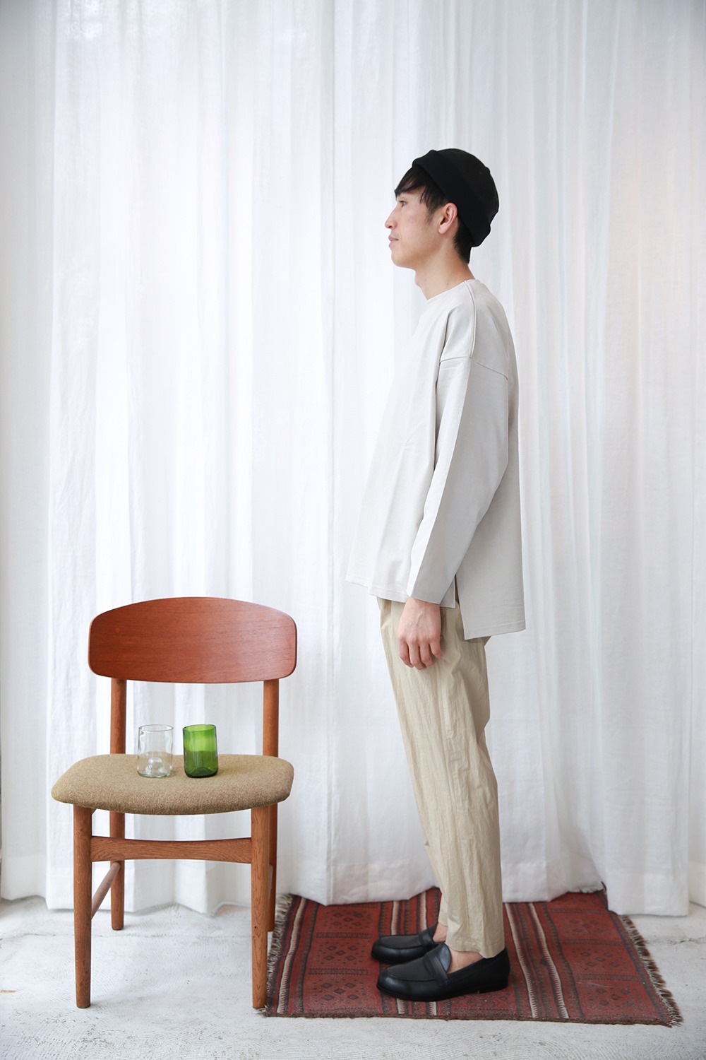 モデル/身長175㎝・体重58㎏・ボトムス29inch・靴27.5㎝/サイズFREEを着用