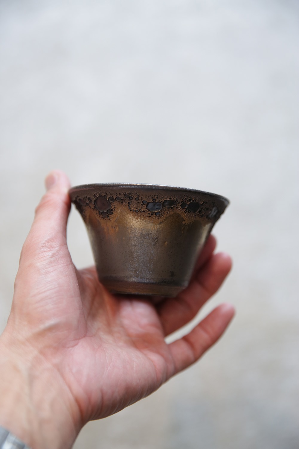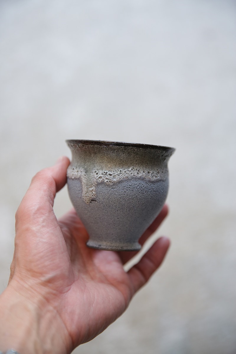 今回入荷した鉢は17個、どちらも発砲による釉薬の表情が魅力的な手のひらサイズ、小振りな大きさの鉢です。