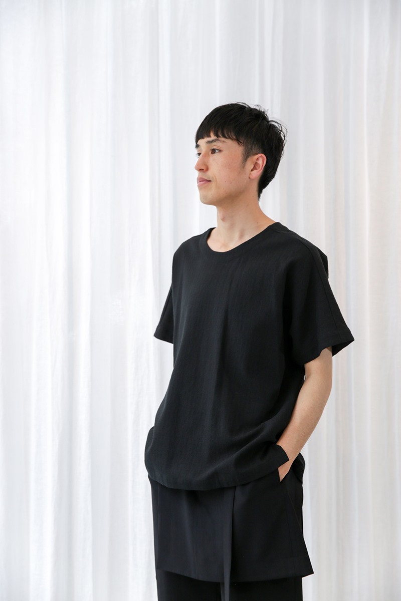細かい凹凸感を出した梨地織りの一種、アムンゼン生地をオリジナルで製作し採用したTシャツ。