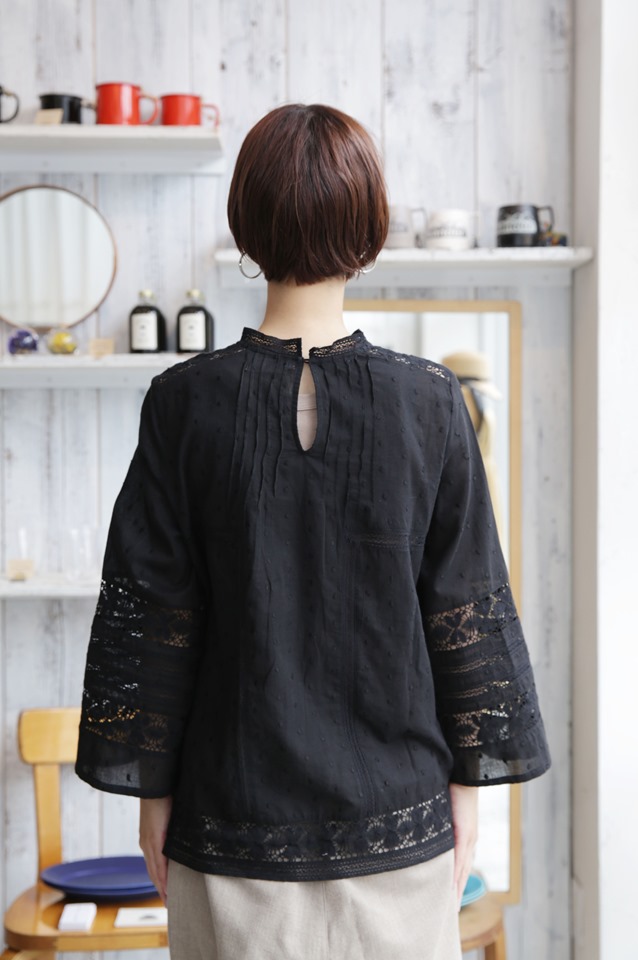 ・特徴的なネック形状デザインと見頃の切り返し。