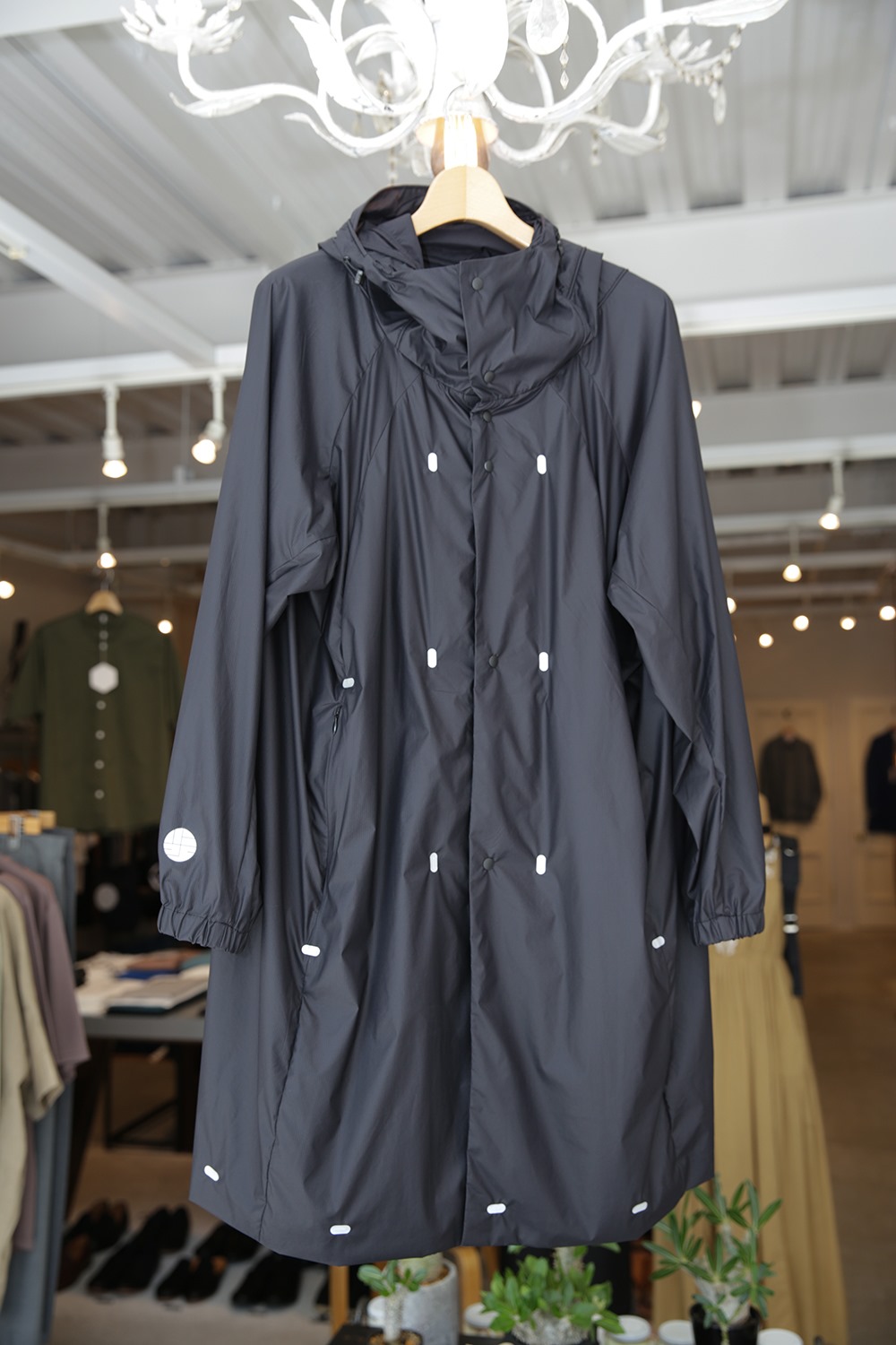 ・ドーム型フードと、バックパックを背負ったまま、上から着用する事を想定したボリュームのある独特のシルエット。