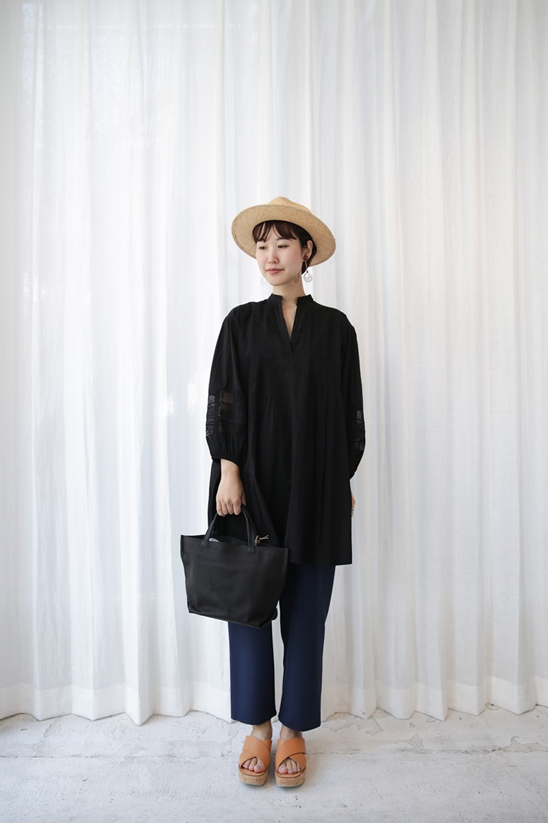 コットンボイル生地を使用した全体的にふんわりと空気を含んだシルエットが魅力のブラウス。