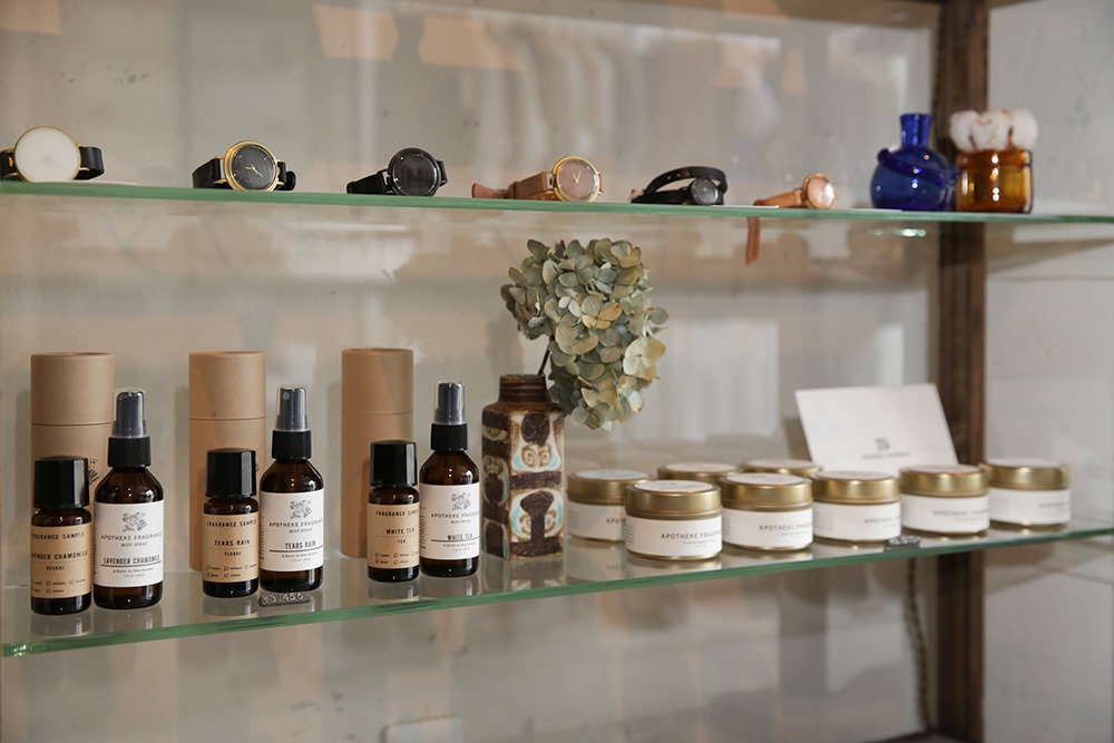 「APOTHEKE FRAGRANCE|アポテーケフレグランス」は、自社工房で商品の調合、生産、パッケージングまでのすべての作業を、ハンドメイドでおこなうルームフレグランスブランド。ブランド名であるAPOTHEKEはドイツ語で「香料、薬草を調合する所」「調剤薬局」を意味します。ブランドコンセプトはSCENTERIOR ※センテリア:SCENT(香り)とINTERIOR(インテリア)を組み合わせた造語 「薬局」のようにお客様の生活に根差した立場で、「生活の一部としての香りの楽しみ方」を提案しています。 旅行先の香油屋や香木屋に強い刺激と感銘を受け、2011年に千葉県にアトリエを設立。手間から生まれるシンプルな良質さとアナログな質感を好み、機械や外注を使用した大量生産を目的としません。そのため、調合や生産はもちろんの事、ラベルへのスタンプ押しから箱詰めまでを自らの手でハンドメイドすることを大切にしています。こうして日夜試行錯誤を重ね作り続けてきた香りの種類は今や60種を超えます。 そして、キャンドルから始めたその商品ラインナップも、今ではルームスプレーやお香など多岐に渡ります。 例えばリラックスしたいとき、特別な時間にお使いになるお客様には、キャンドルやお香を、お子様やペットのいるご家庭でしたらミストスプレーを、空間をいつもお気に入りの香りで満たしたい方にはディフューザーと、香りをインテリアの一部として、暮らしを楽しむために使っていただければと願っています。
