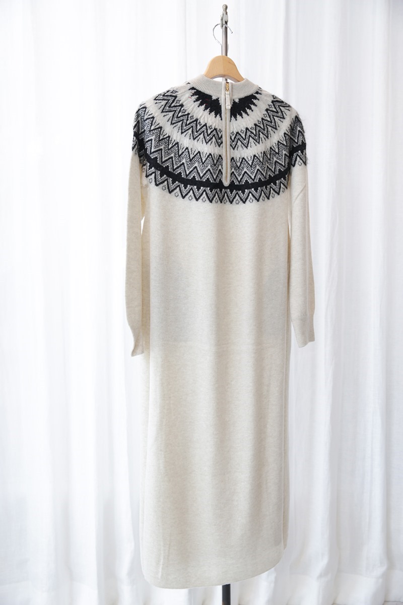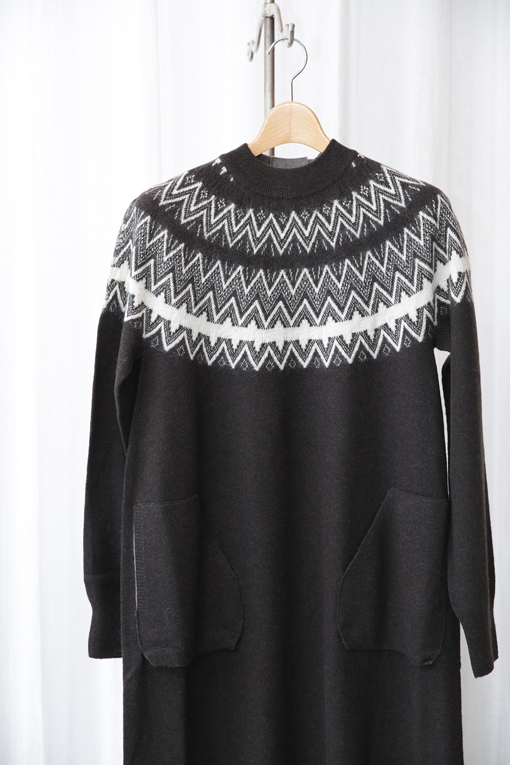 首元には印象的なジャガード柄が編まれた秋冬の主役的存在感あるワンピースです。