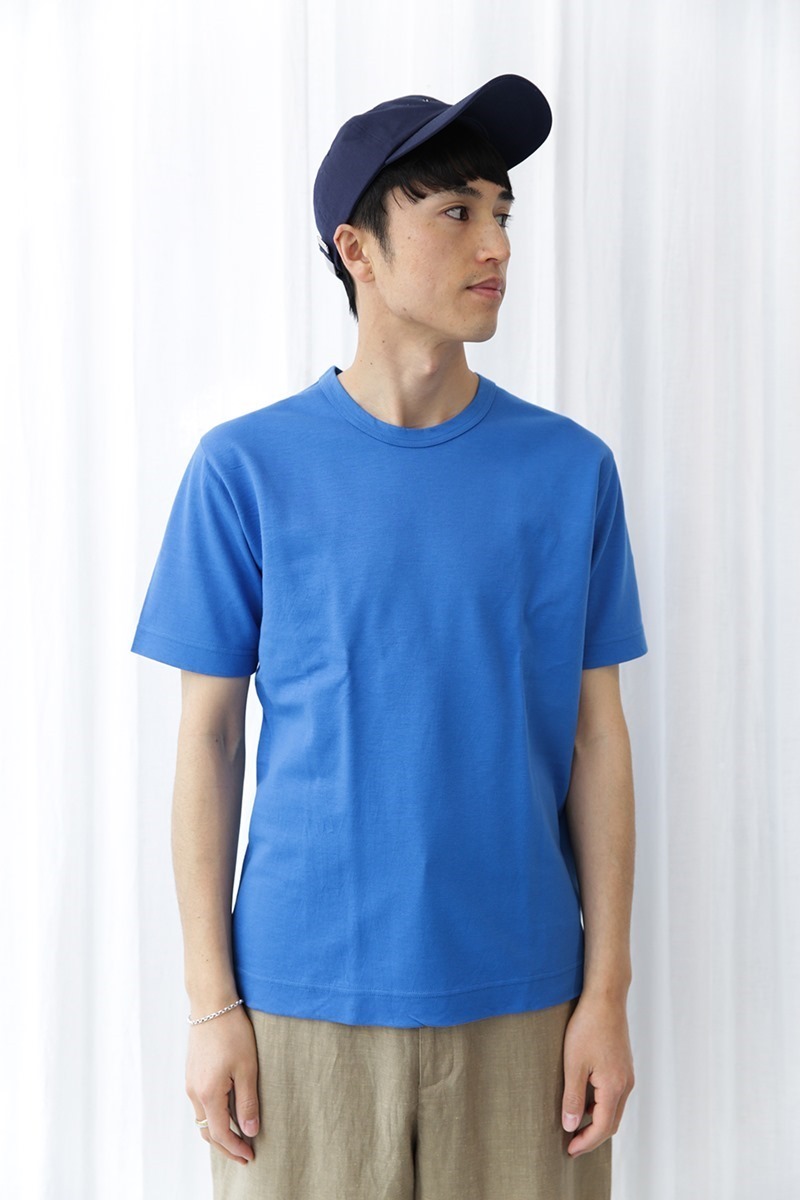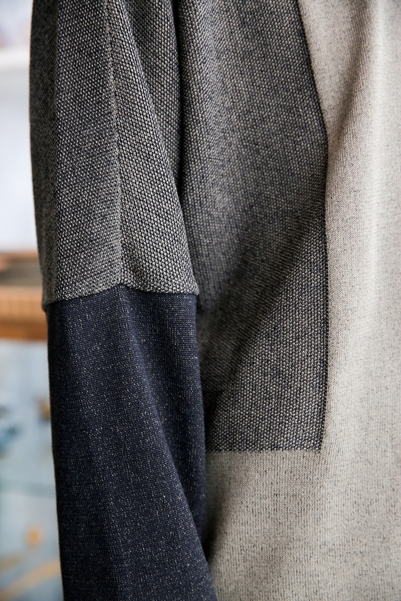 横網みによるカットソーで、身頃内の色、表情の変化も編み地の変化によるもの。