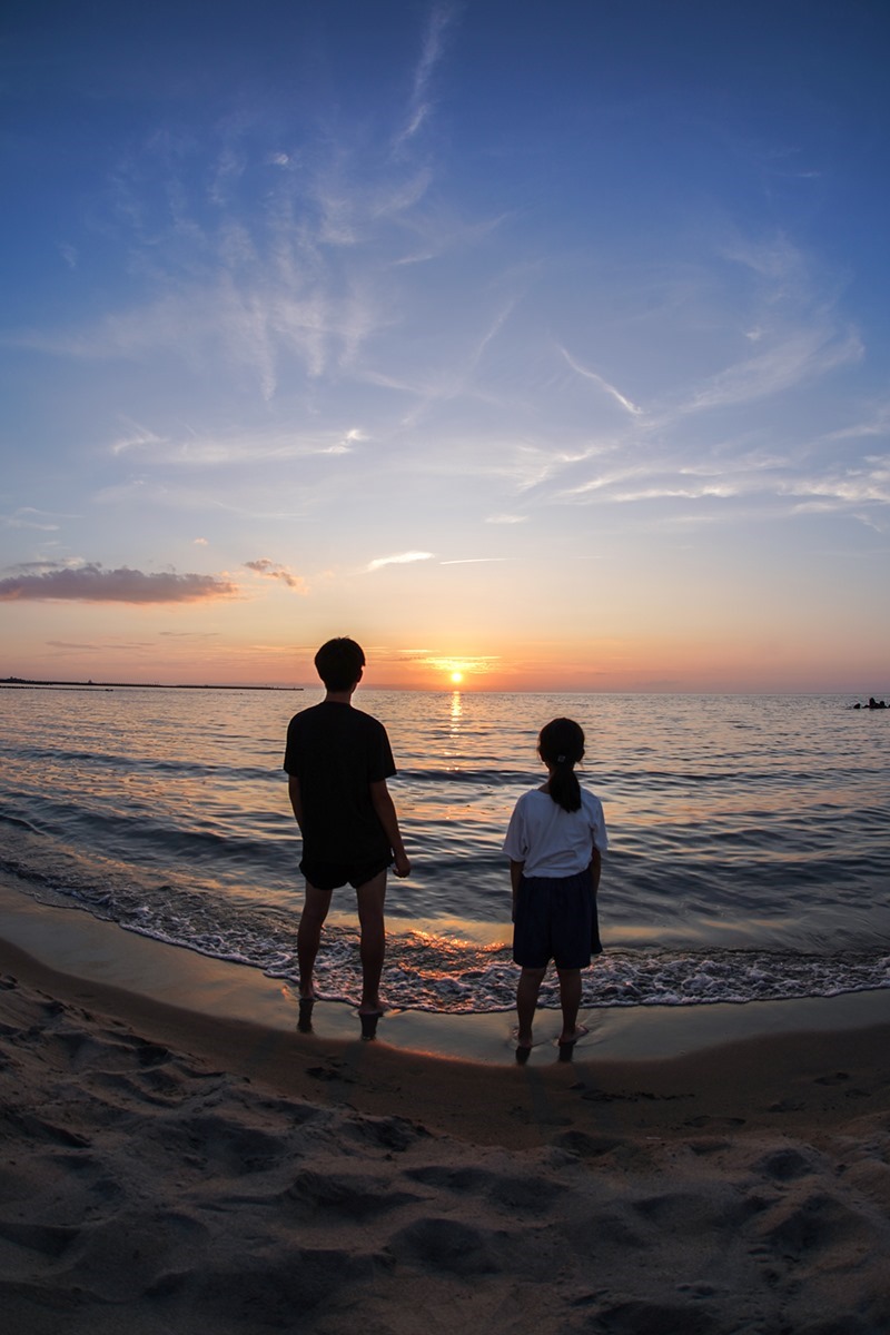 2本の糸の表裏を編み地によって変えることで、色のグラデーションを表現しております。