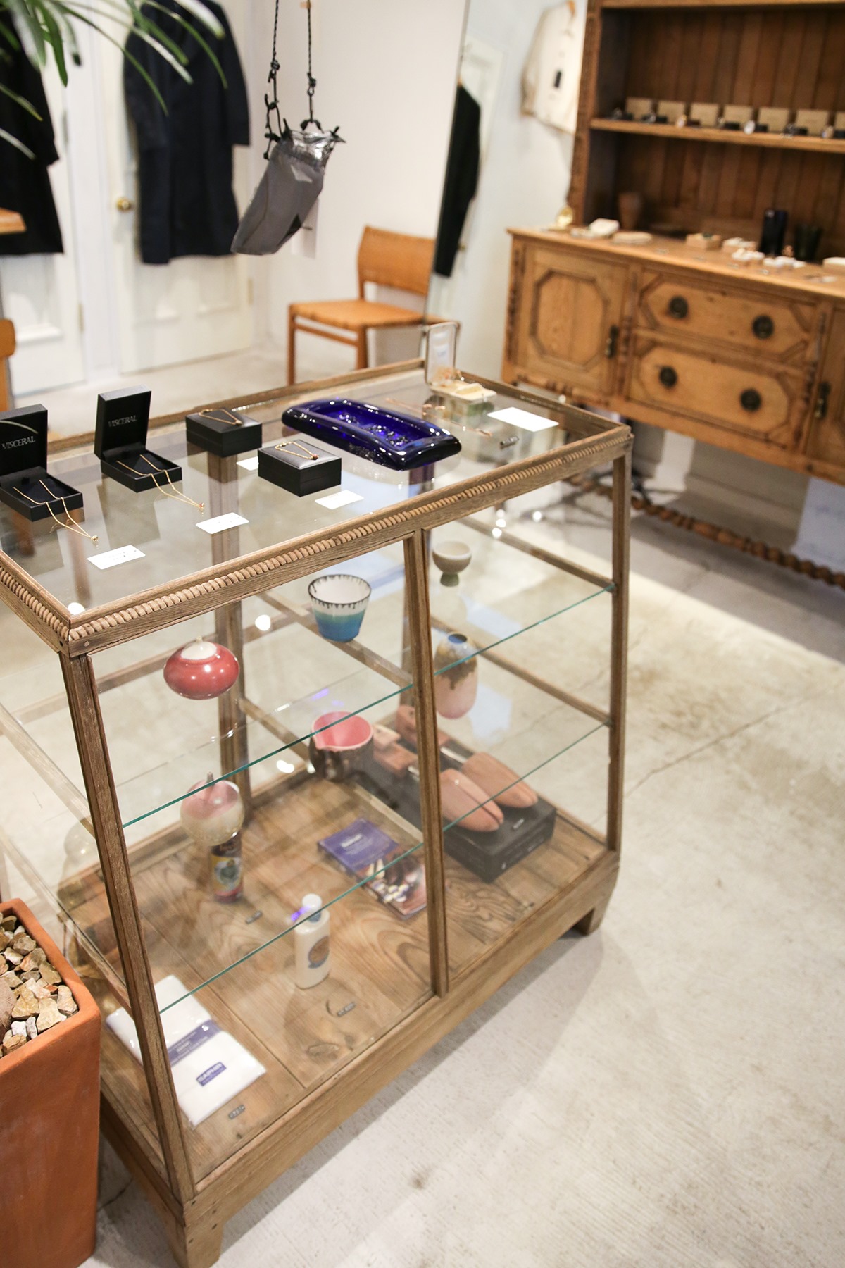 そして、こちらの什器はそんな時代に作られた日本の美しい家具、きっとどちらかの商店で使われていたのでしょう、衣装の美しいガラスケース、「pejite|ペジテ」さんで出会い購入。
