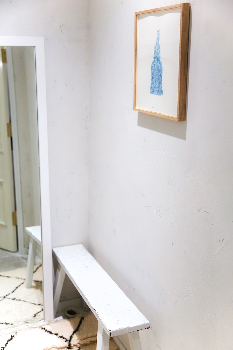 このドローイングを購入した私の思いはブルーボトルのアートとしての美しさを私の好きが感じたのですが、それ以上に「今、洋服屋を営む自分自身、青二才で粋がっていた若き日々の好奇心や負けず嫌いさなどなど、人として成長しながらもあの頃の気持ちを持ち続けられる、”熟成された青さ”を肯定し、表現できる人で在りたいのかもしれない」、そんな思いに駆られこの作品を購入してきた次第です。