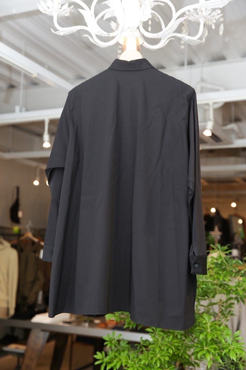 サイドに深いスリットが入ったAラインのオーバーサイズシャツ。