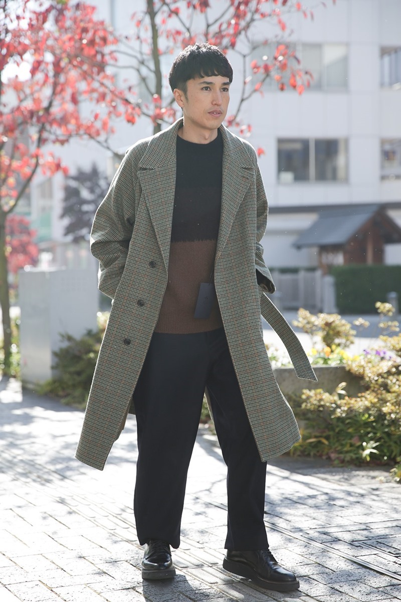 「URU」 WOOL CHECK BELTED COAT ¥88,000-