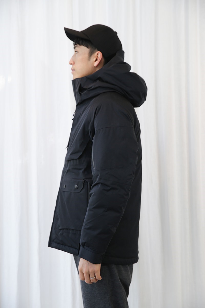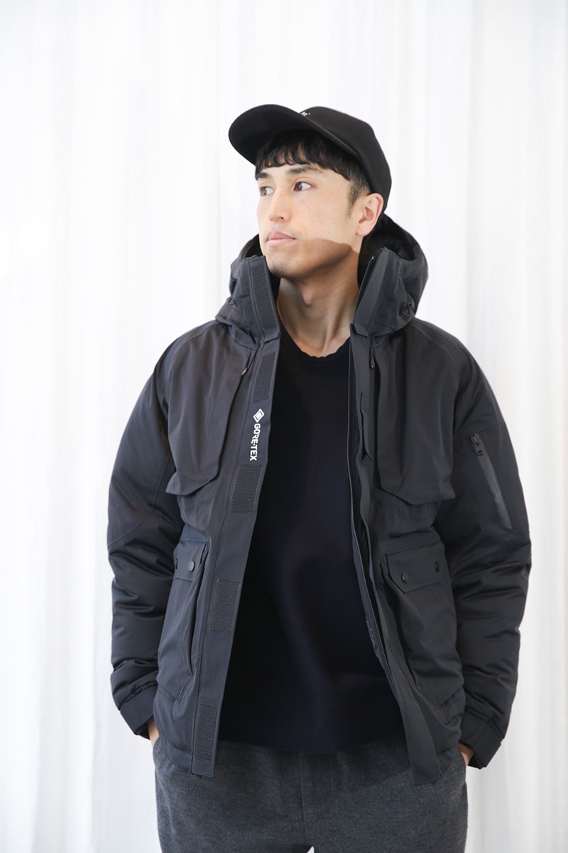 適度に光沢感のあるナイロン生地が品良く綺麗で、ゴールドのジッパーと相まって街スタイルに良く似合います。
