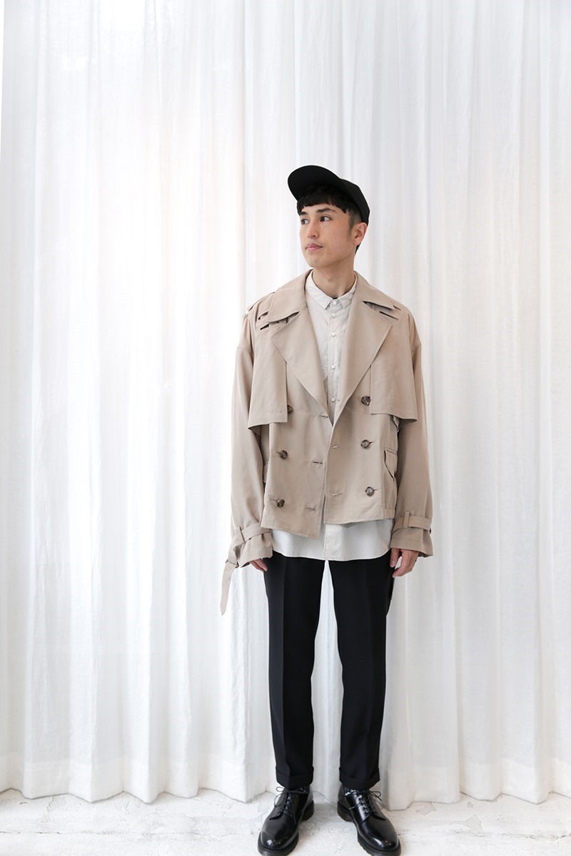 「Iroquois|イロコイ」LAYERED TRENCH DYED POPLIN を着て。