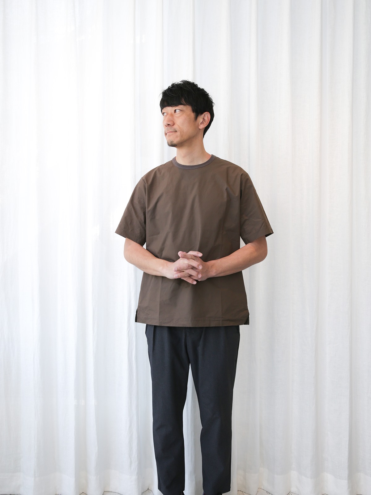 「NO CONTROL AIR|ノーコントロールエア」トップポリエステルツイルシュリンクジャケットと「marka|マーカ」POCKET TEE S/S。
