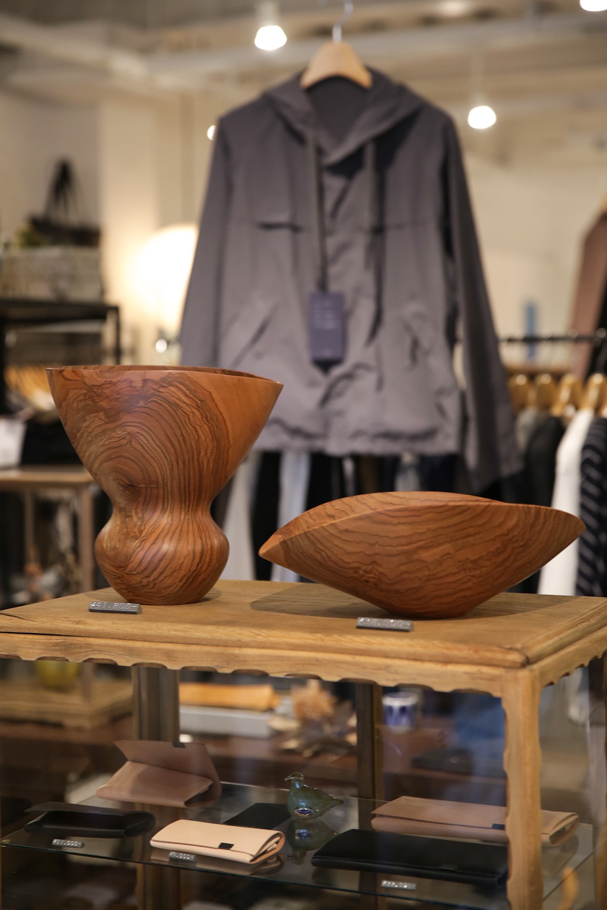 「盛永省治」 WOODTURNING VASE 山桜 ¥41,800- 写真左