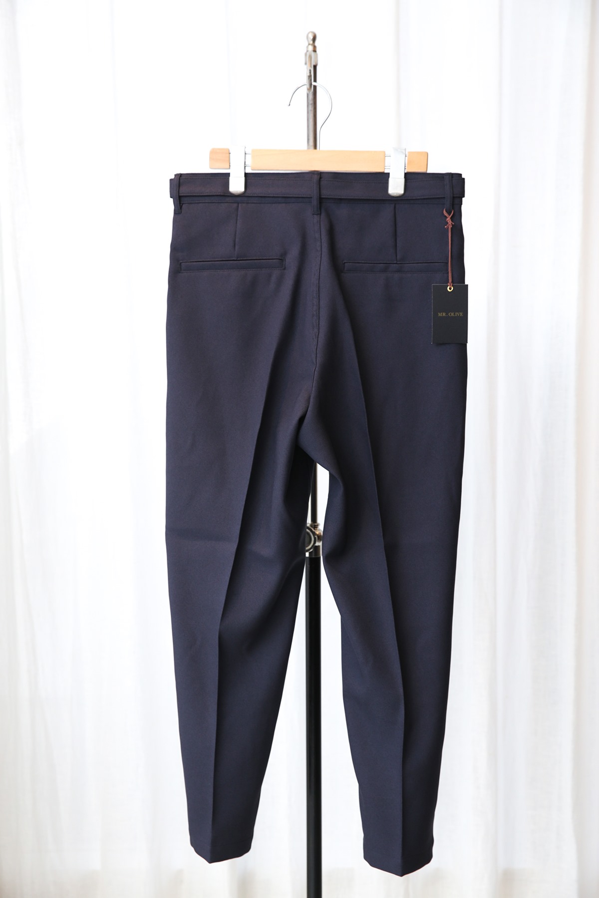 「MR.OLIVE」 RETORO POLYESTER TWILL / BELTED WIDE TAPERED PANTS ¥19,250-