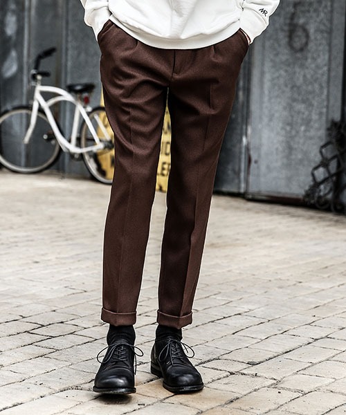 「MR.OLIVE」 RETORO POLYESTER TWILL / ONE PLEATS STA-PREST TAPERED PANTS ¥18,150-