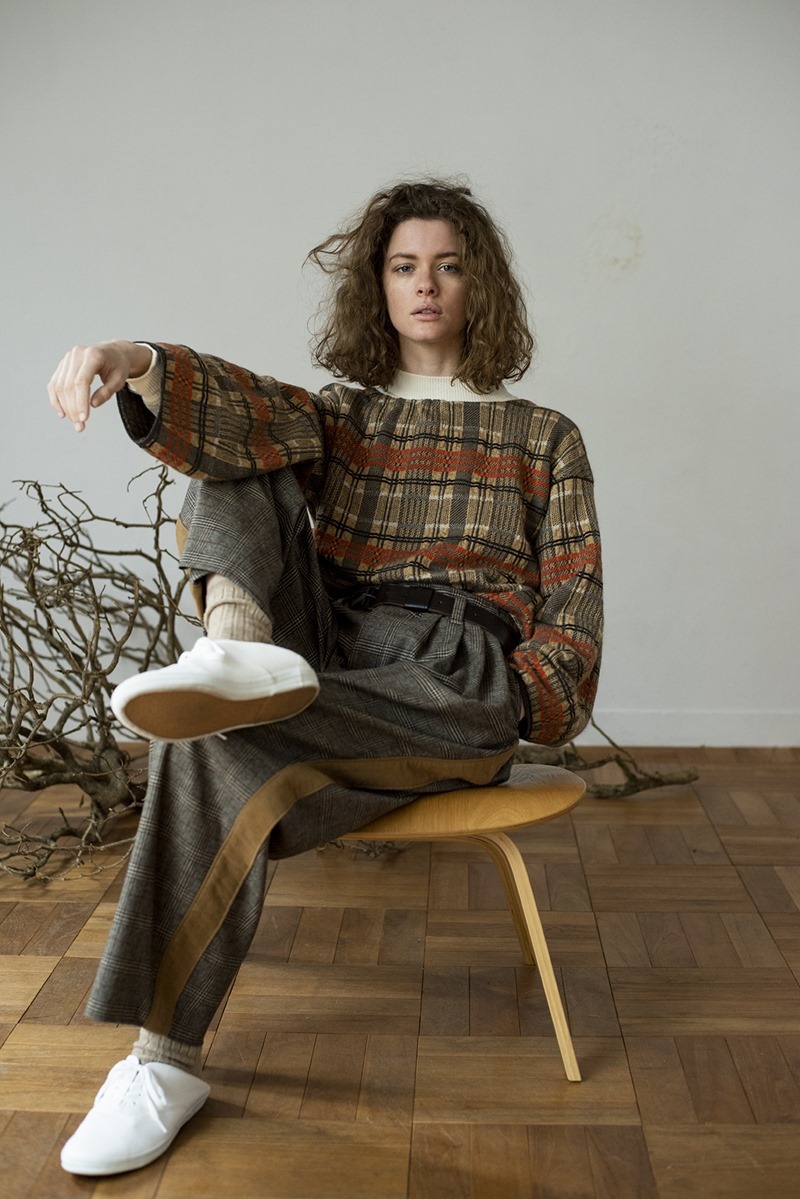 「unfil」 checked jacaurd mohair silk blend sweater ¥35,200-