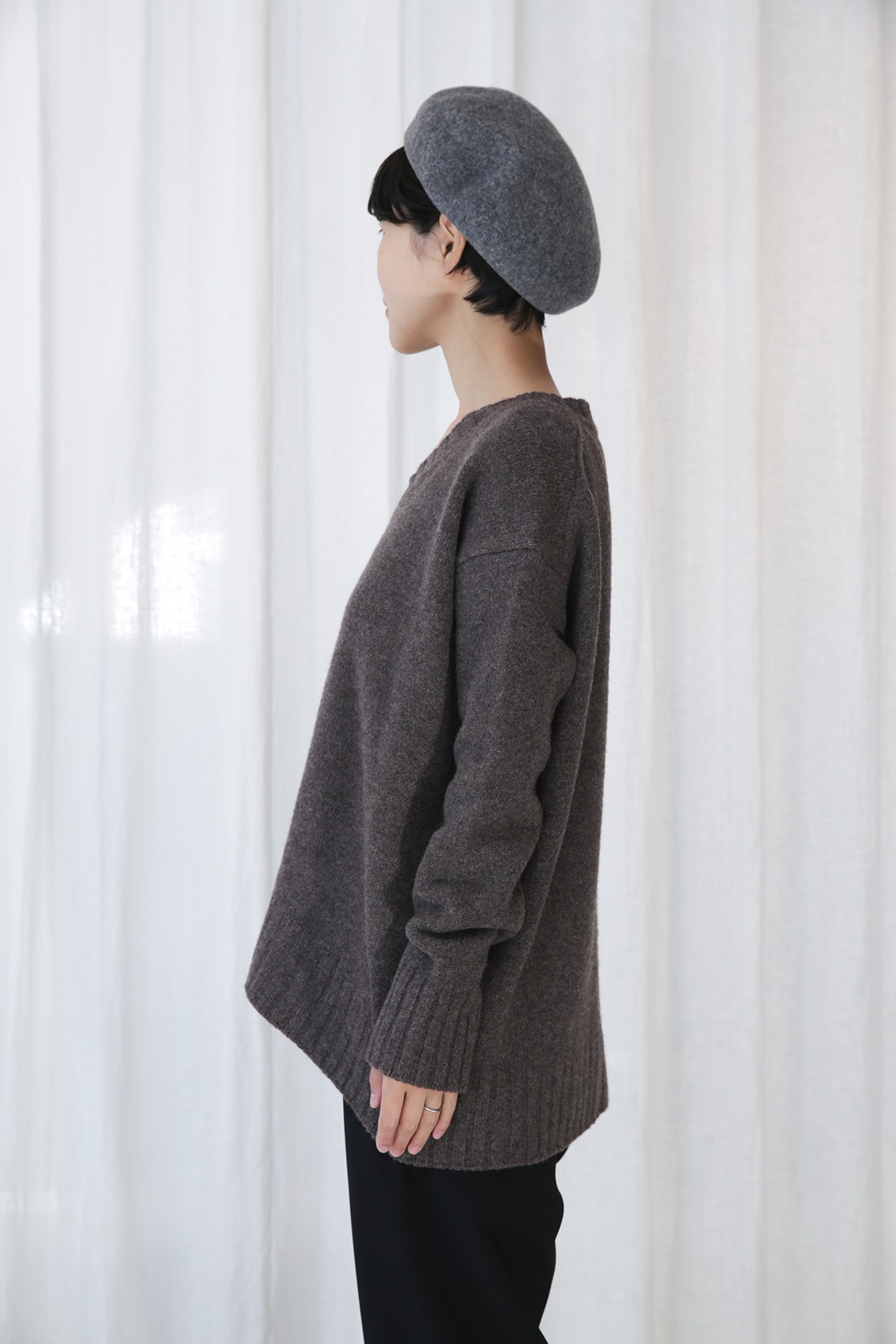 広めのVネック、たっぷりしたサイズ感。