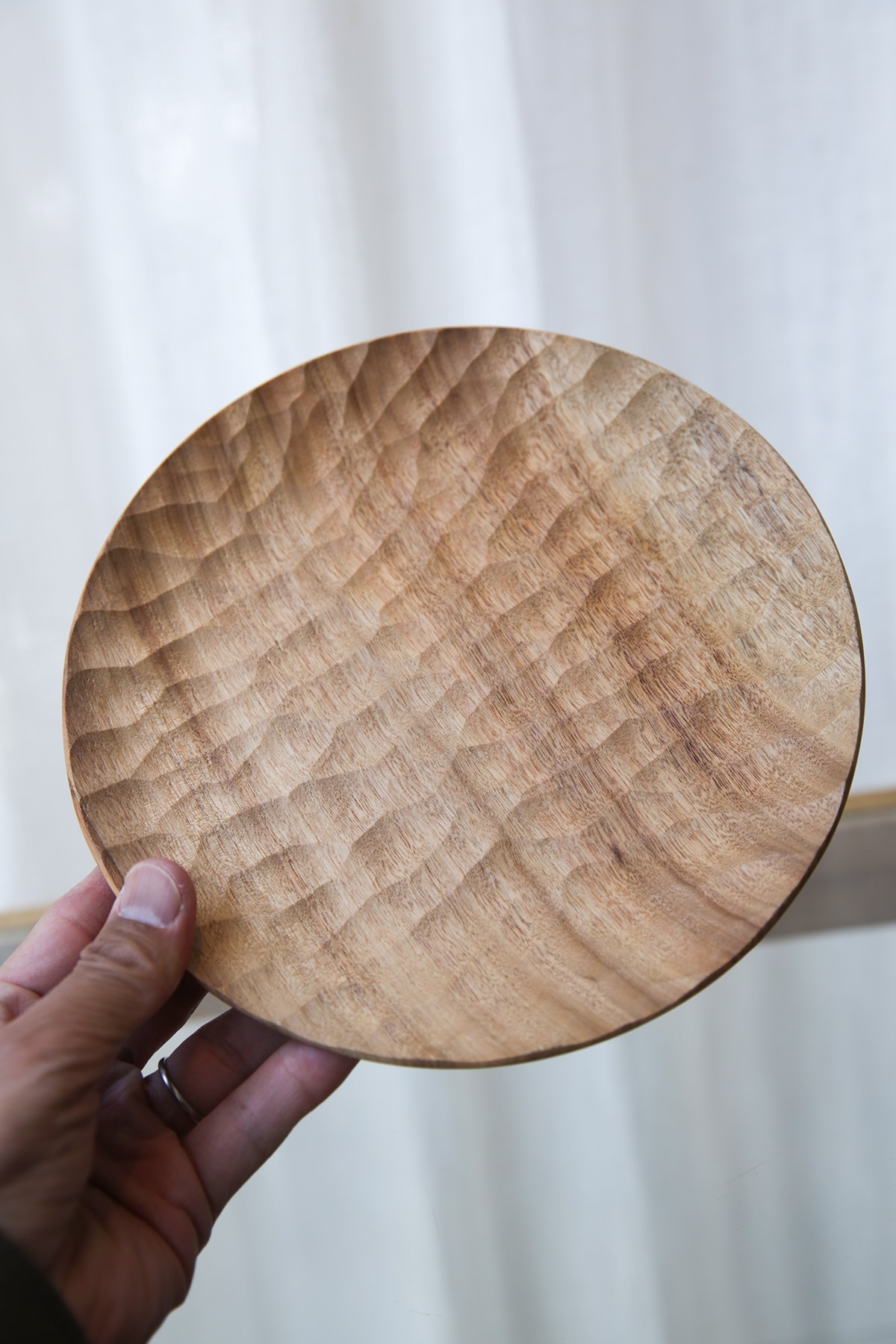 クスノキを角材から削り出して制作されたプレート。