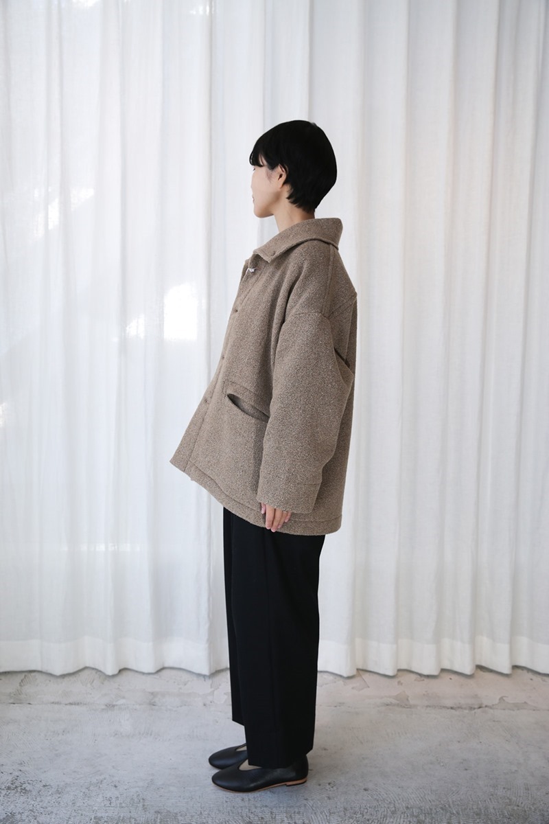 パスポートも収まるサイズになっているので、セキュリティーポケットとしても利用できます。チャージャーポート内部胸部のポケットは充電器のポートとして利用することができます。このポケットは2カ所の出入り口があり、フロント左右のベンチレーションと併用することで衣服内ポケットからUSBケーブルを衣服外部まで誘導することができます。セキュリティーポーチパッカブルにするために備えられたパッカブルポーチは、着用時はウエスト内部に位置するのでセキュリティーポーチとしてもご利用できます。パッカブルを可能にしたのは特殊な糸。ミクロ単位で起毛したナイロン糸はまるでコットンのような肌触りを持ちながら、シルクのようなハリ・コシを持ち、ナイロンの強度を持つ糸。その糸をマイクログログラン状の組織に織り上げることで 皺になりにくく、軽く、強く、 天然素材の様な着心地を備えたテキスタイルに。生地の固さは柔らか過ぎず固過ぎず、フワッとクシャッとした風合い。デザインは、広め身幅、長めの着丈でゆとりを持たせたロングコート。 襟元はボタンを止める箇所で2通りのアレンジが可能。大容量ポケットと小分けに収納出来るポケットを各部に配置(ポケット数:7)。肩幅の設定の無いデザインにする事で様々な体型にフィット。襟後ろにハンガーフックを配置。パッカブルポーチへ収納が可能。