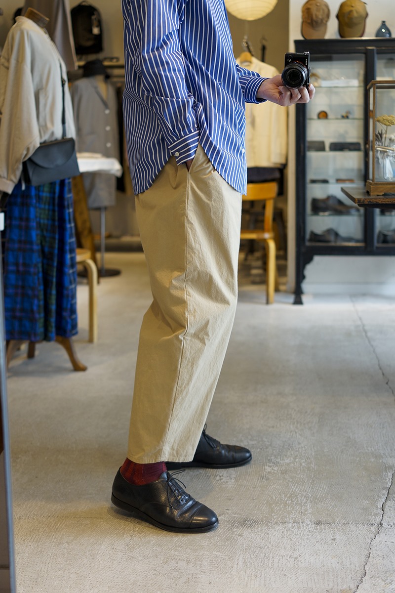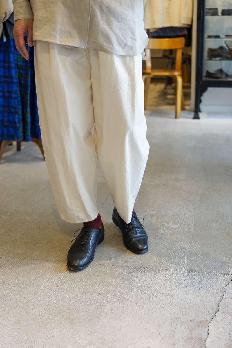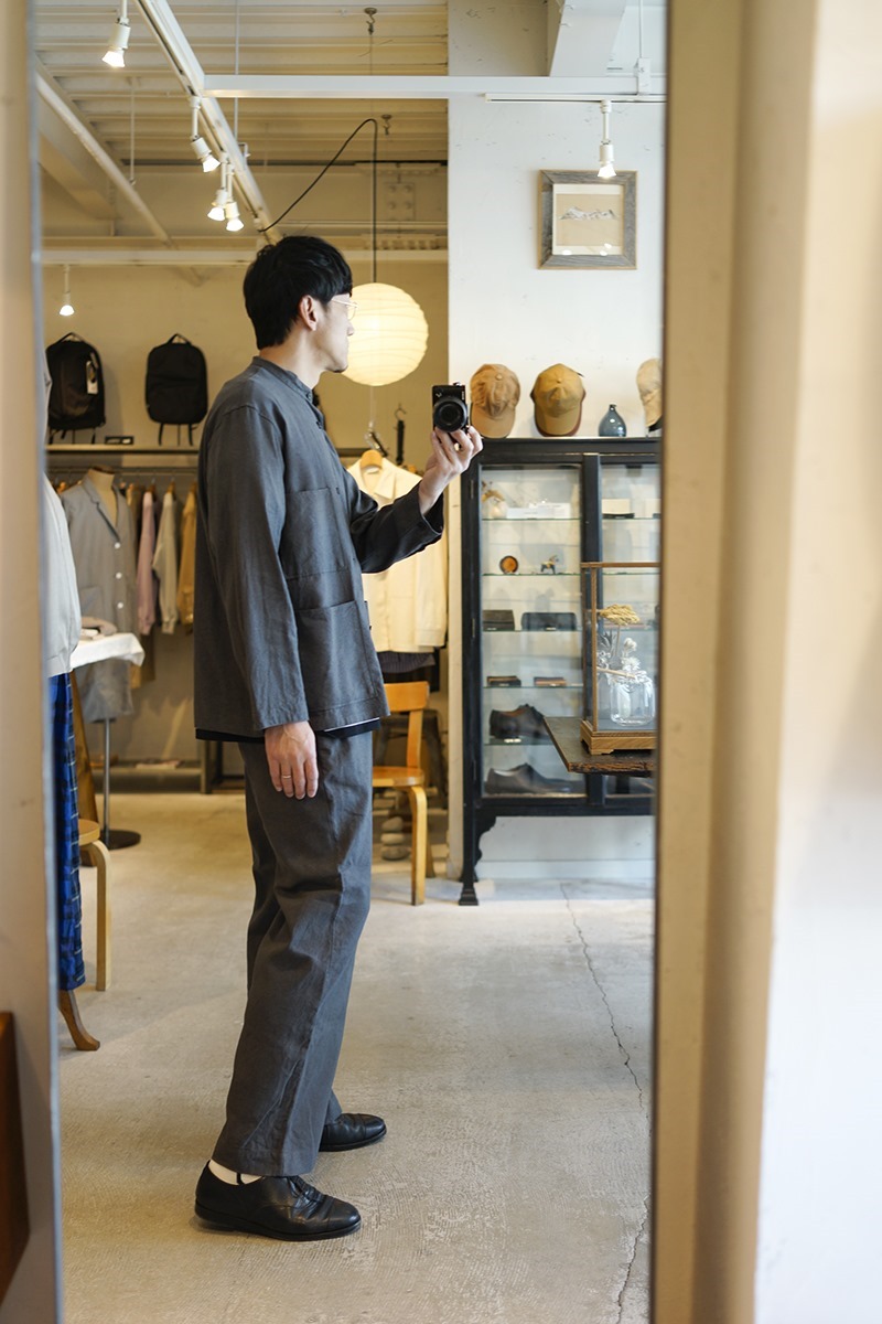 今季のモデルは、上質なリネンを用い、ゆったりとしたシルエットで、派手からないモノトーンとストライプを配し、気楽にいていただけるラインナップ。