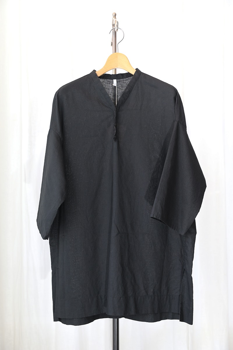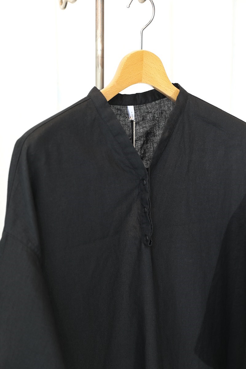 無地のシンプルなデザイン仕上げシルエットに拘った一枚。首に沿うように少し長めに作られたリブのデザイン。スッキリとしたサイズ感のレギュラーシルエット。