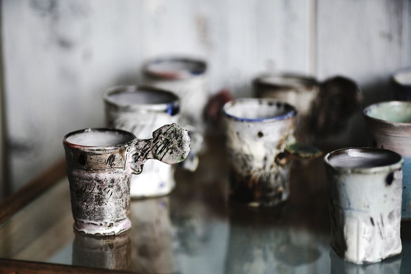 買い付けの後、コーヒーを入れてくださったその器も、お皿も岡野さんの作品。