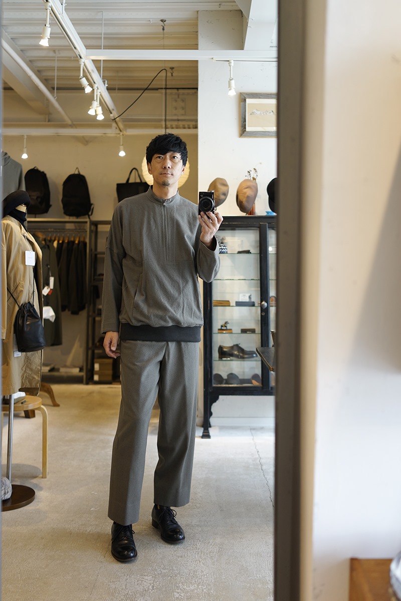 「YANTOR|ヤントル」Stone Nep Halfxip Pullover & Stone Nep Slacks、着用。