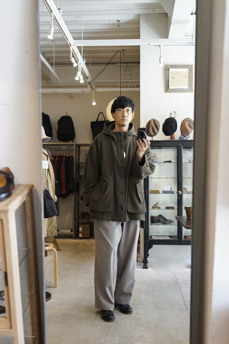 「VOAAOV|ヴォワーヴ」Yabure Oil Cut Wool Mountain parka、着用。