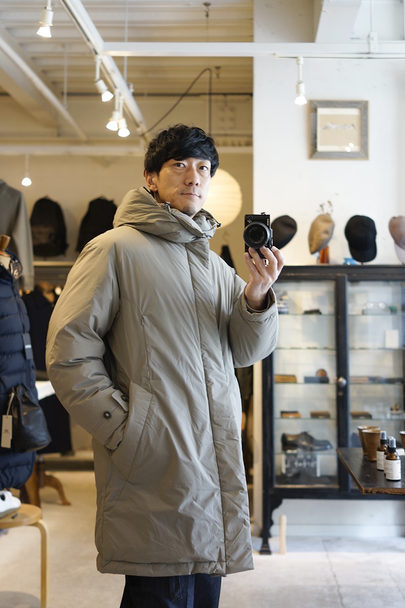 膝まで包み込む着丈とナンガ社の軽く暖かいダウンのコンボは、厳しい冬にとても頼もしい。