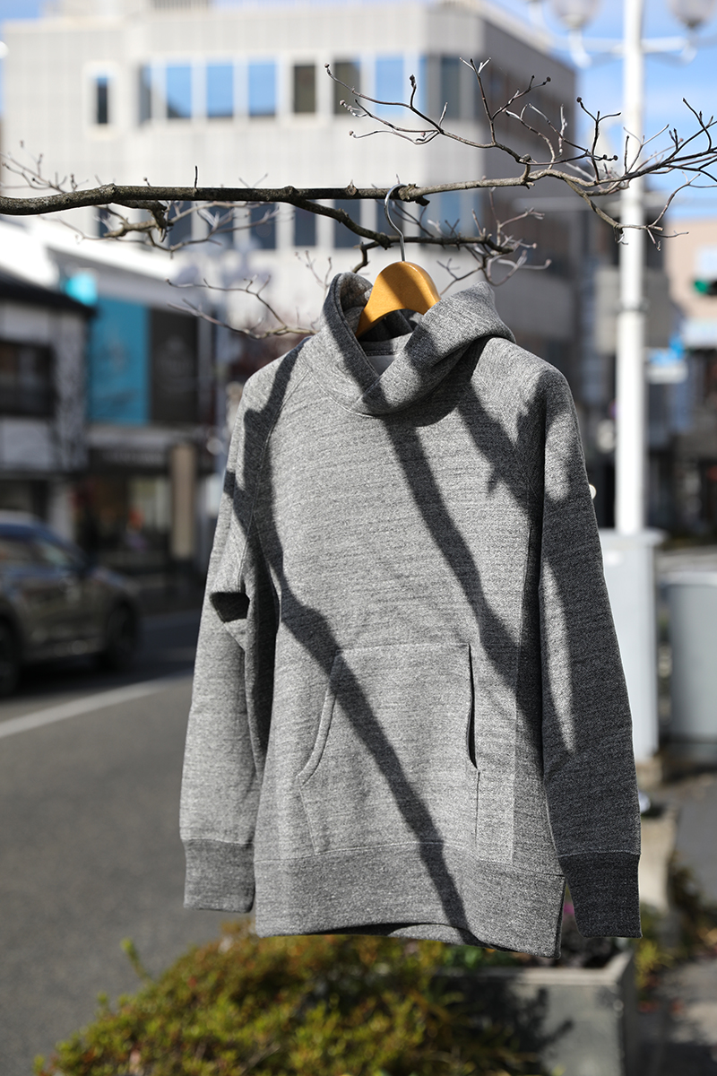 肩と身頃にゆとりを持たせ、裾にかけてゆるやかにゆとりを削っているのでドロップショルダーながらもスッキリとしたシルエット。極力シンプルにしながらも、裾や袖口など縫目に補強ステッチを施したり、ポケットの向こう側に補強テープをあてたりと、デイリーに着用してもらうためのデザインが特徴。