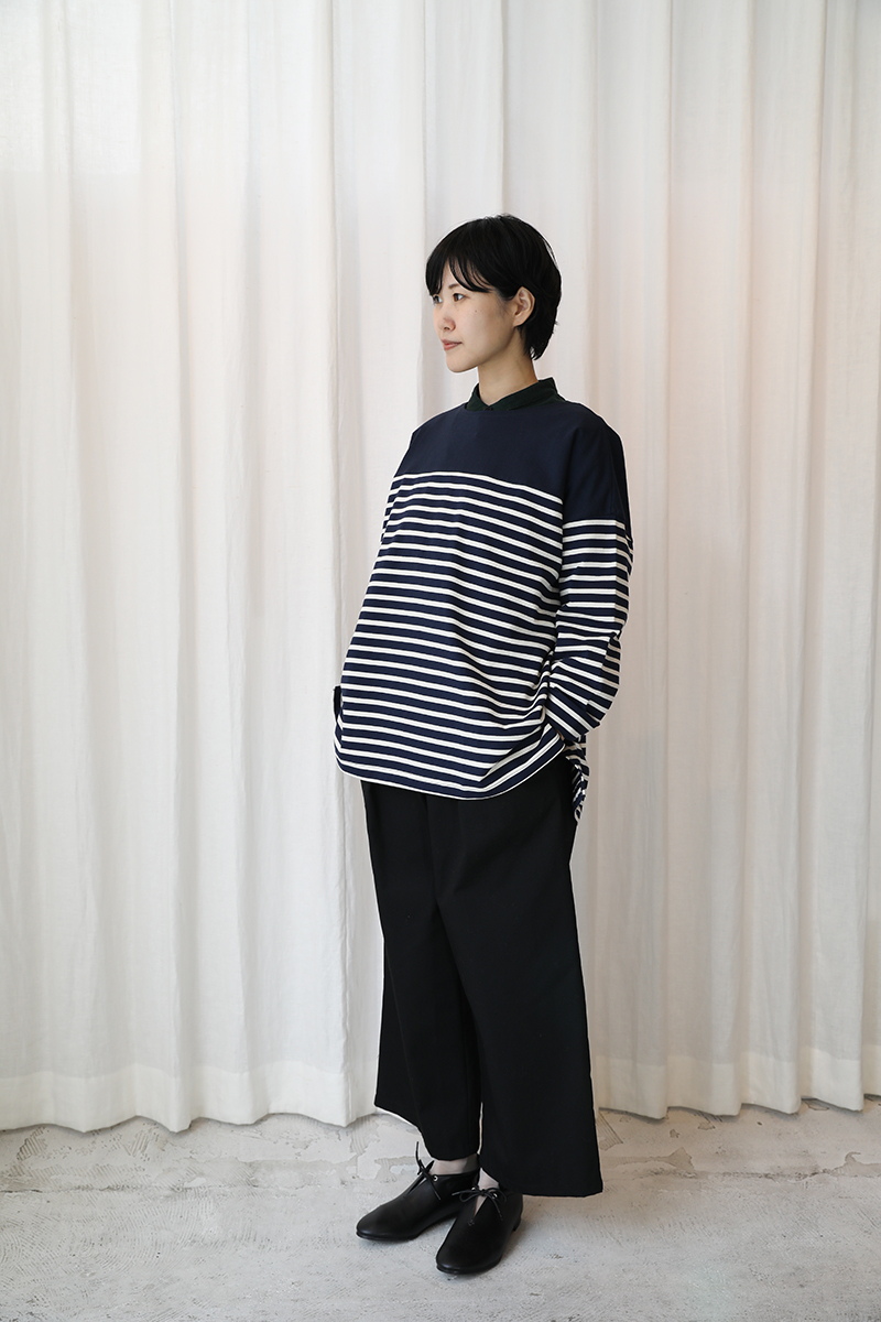 表生地にウール生地、裏地にコットン生地で仕立てた暖かなカットソー。袖口の見返しから覗くコットン生成り生地のアクセントあり。今季モデルは身幅・袖幅シルエットをゆったり目。