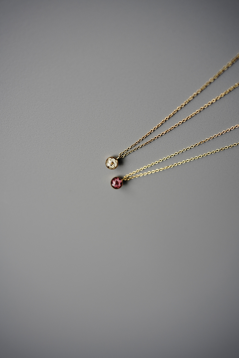 こちらのヨーロッパ原産地のビバーナムという小さな花を閉じ込めた、シンプルで存在感のあるビバーナムシリーズも透明感、素材感、そして自然の美しさをアクセサリーで表現した同レーベルの傑作。
