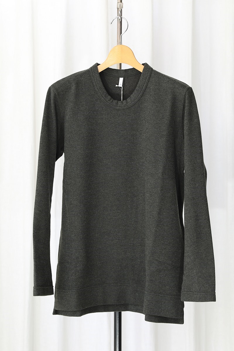 ウールとコットンレーヨンの二重編みの圧縮ニット、真冬に嬉しいニットのように暖かなロンTです。