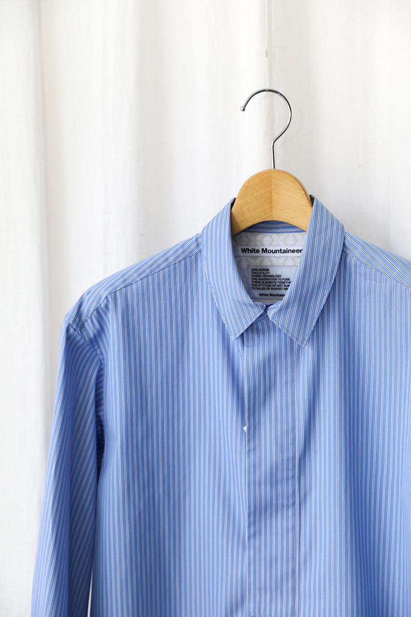 「ATON」GIZA STRIPE BAND COLLAR SHIRT