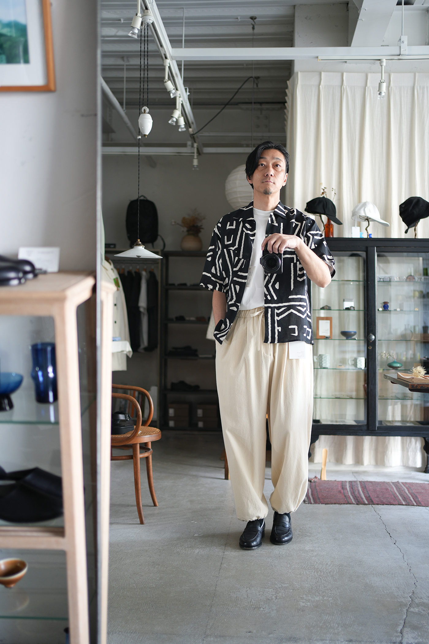 「White Mountaineering」Repose Wear BAND COLLAR SHIRT & 「marka」CARGO SHORTS