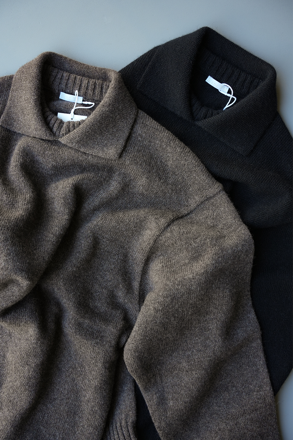 「Blanc YM」ALPACA POLO COLLAR KNIT SHIRT