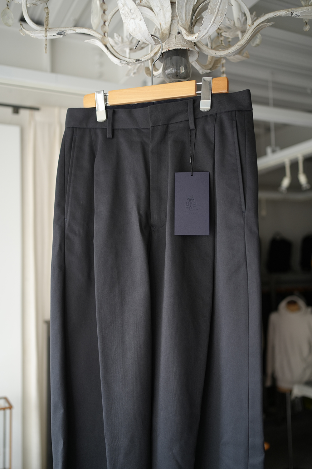「URU」1 TUCK PANTS 2025.09.20 <MEN’S ITEM> 「URU」1 TUCK PANTS、入荷。 「URU」 1 TUCK PANTS ¥39,600- カラー/ダークネイビー サイズ/1・2 素材/コットン100% 25FOCC02