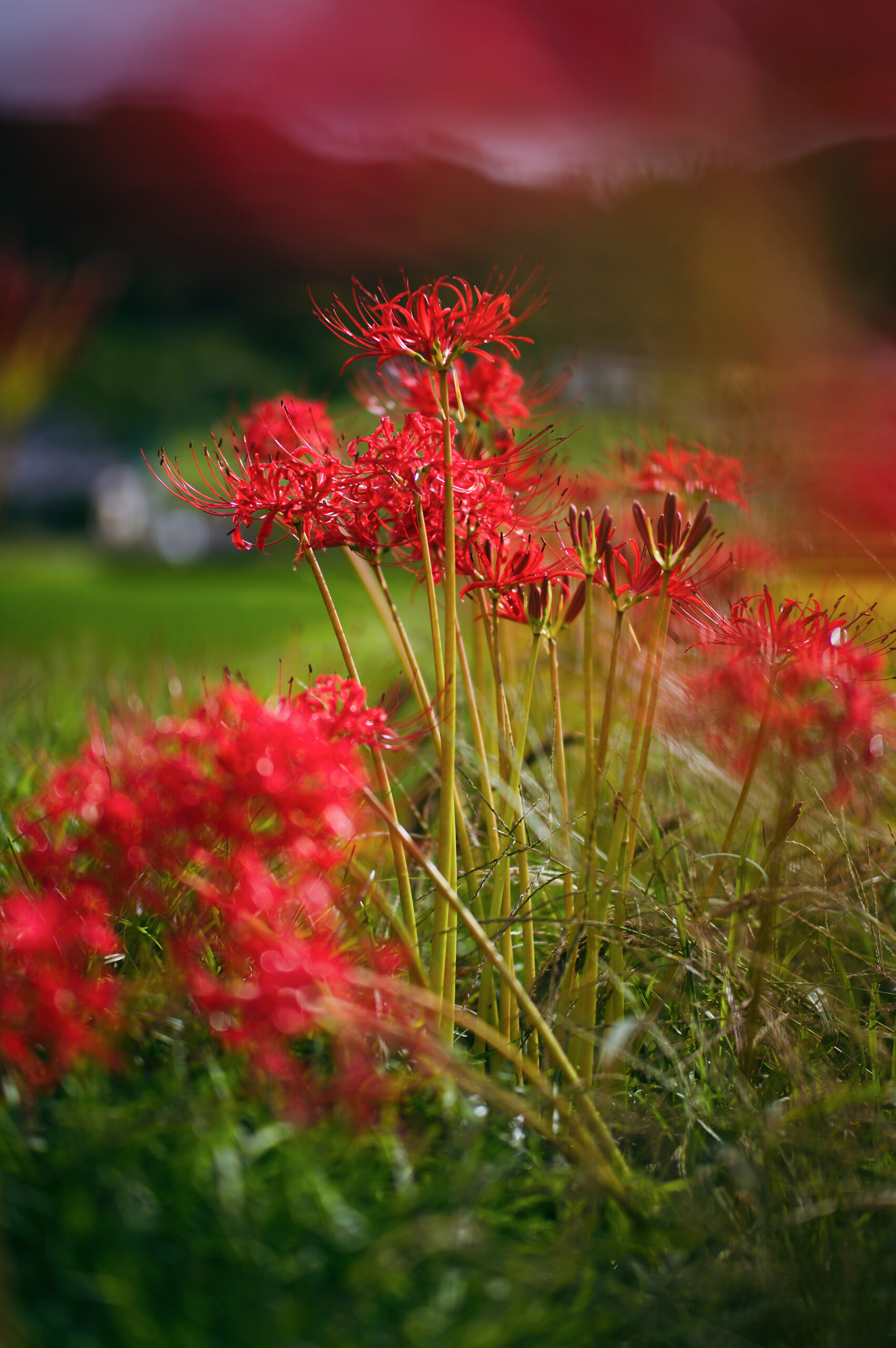 また、小学校国語の教科書にあった曼珠沙華が文に登場する悲し気味の作品(題名思い出せず)も思い出し、どこか哀愁感じる景色です。