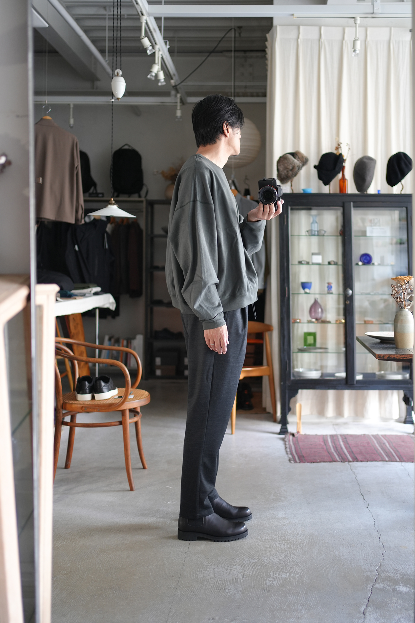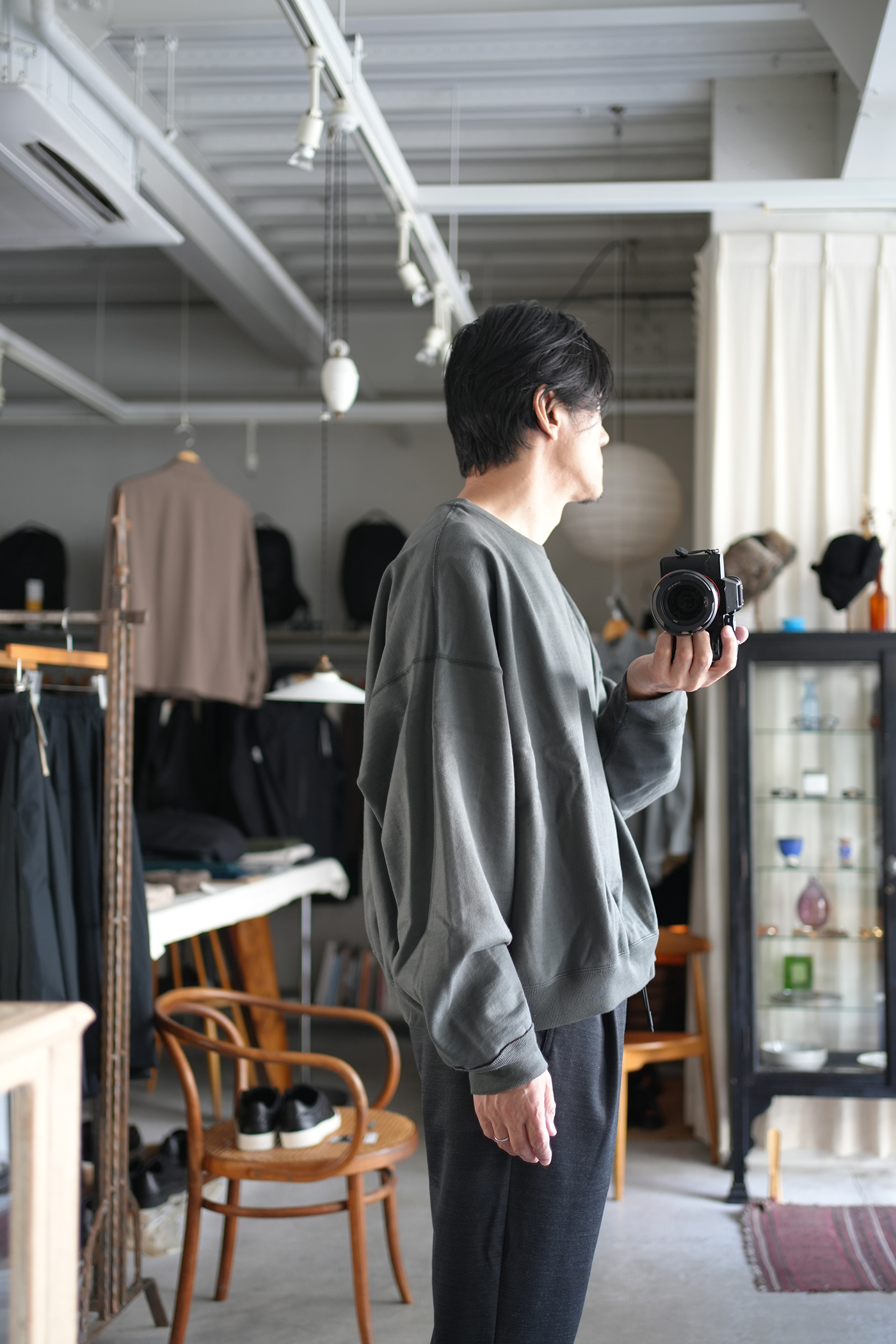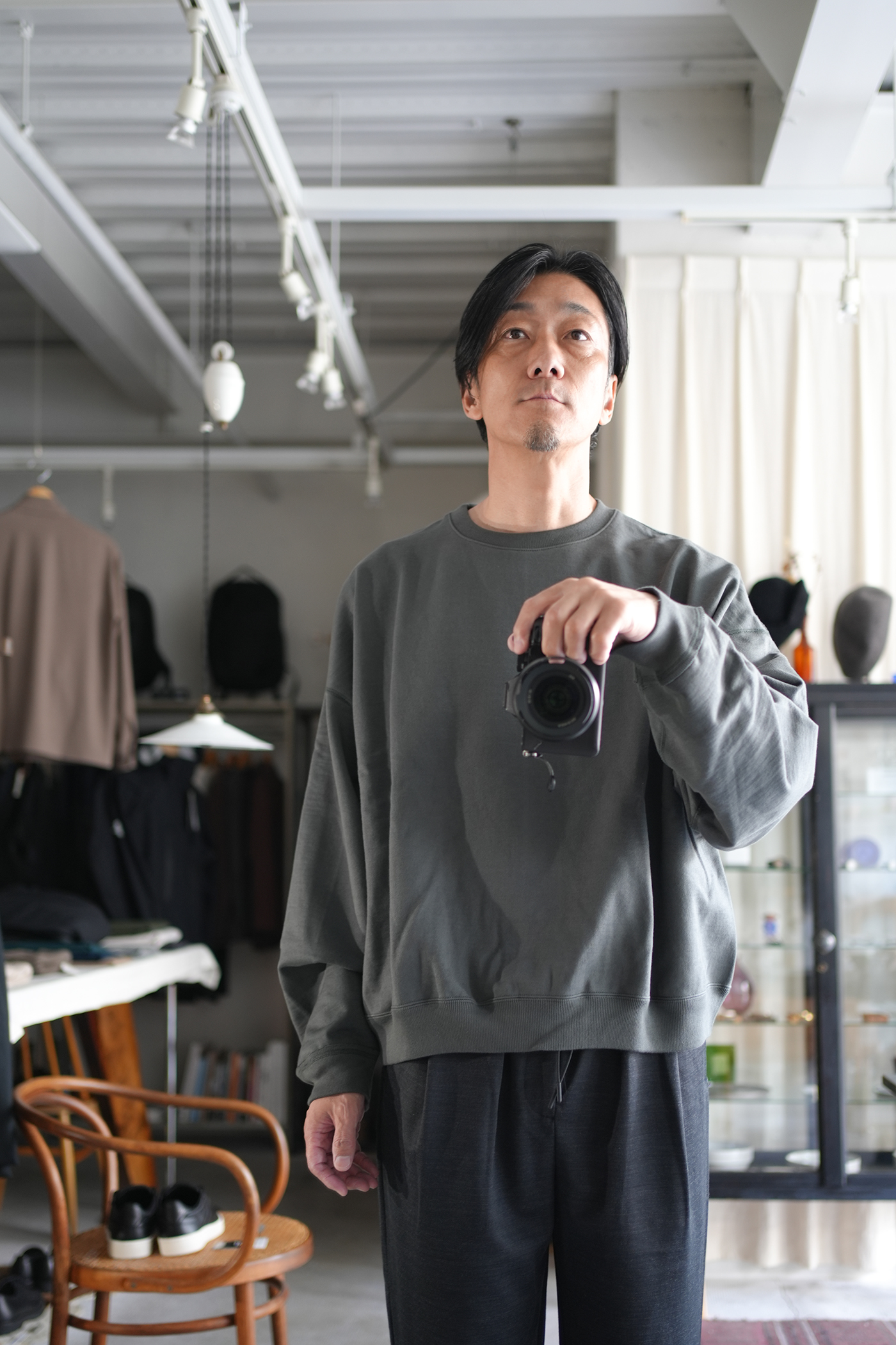 厳選されたオーガニック・ピマコットンを使用。毛羽を抑えたコンパクトヤーンの繊細な糸を双糸に撚り合わせ、吊り編み機で編み上げた贅沢な生地です。一般的なスウェット地と比べ、ピリング耐性に優れ、上品な光沢感が長く持続。吊り編み機特有のふんわりとした風合いと、緻密に詰められたタフな質感が絶妙に共存。空気を含んだような豊かな膨らみと、しっかりとしたハリコシのある風合いが、着る人を魅了します。ベーシックなクルーネックスウェットを、現代のスタンダードとも言えるオーバーサイズシルエットで再構築。裾のリブがソフトにシルエットを引き締め、絶妙なドレープ感を演出。丸胴による脇の縫い目のない美しいシルエットに加え、後ろ身頃をやや長めに設定。肩が自然に落ちる、軽やかでリラックスしたラインが生まれ、360度どこから見ても美しいフォルムを実現しています。緻密に計算されたシルエットが特徴のクルーネックスウェット。着るだけでコーディネートに洗練されたモダンさをもたらす、魅力的なアイテムです。ハリコシのある上質な生地が、そのユニークなラインを鮮やかに表現。現代的なムードに調和したシルエットが、新鮮なセンスと視点をもたらし、多彩なスタイリングの可能性を広げます。