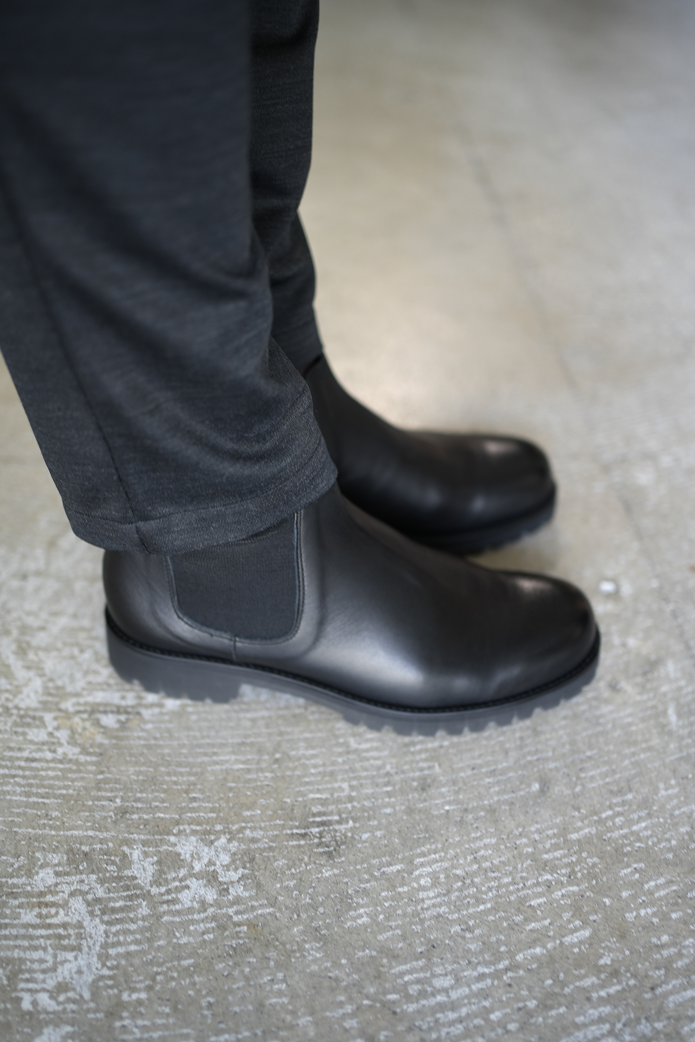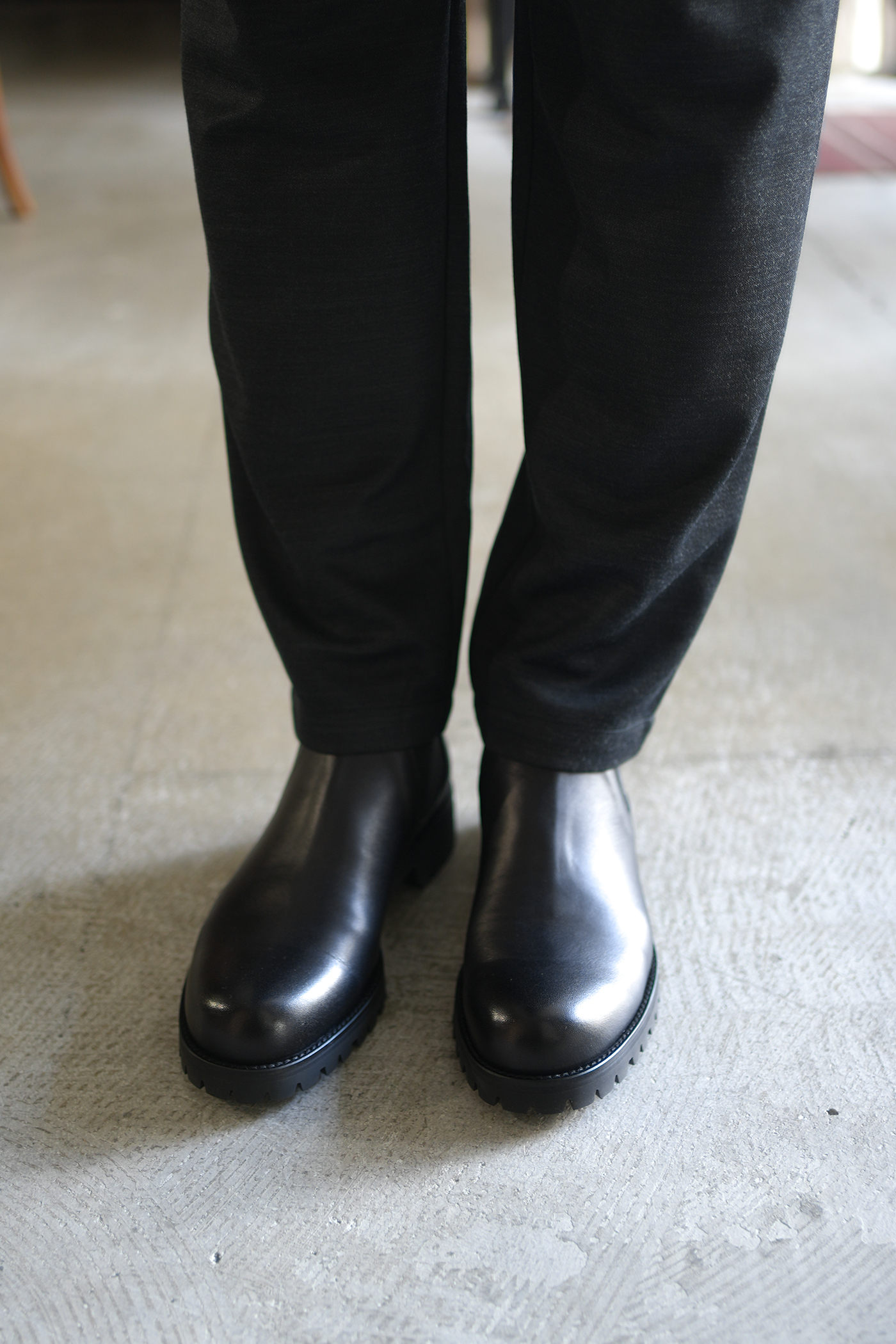 防水=ウォータープルーフレザーを使用したすっきり丈&すっきりとしたフォルムのサイドゴアブーツ。レザーはクロム鞣しの牛革を使用し、スコッチガード皮革保護剤加工が施された非常に柔らかなソフトレザー。ソールにはグリップ力も高く、水にも強いVIBRAMソールを使用、車の運転も安全で丈夫。筒の高さも抑えられており秋冬春と季節も長く、履きやすく、ボトムスも合わせやすく、全天候型で活躍する一足。防水レザーとVIBRAMソール、秋から初夏の雨、冬の雪も安心、シーズン長く活躍するミドル丈のブーツです。