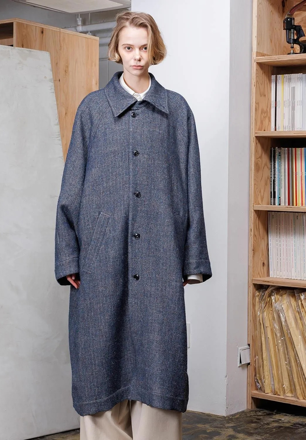 「VOAAOV」 WOOL LINEN HERRINGBONE Long Coat ¥66,000-